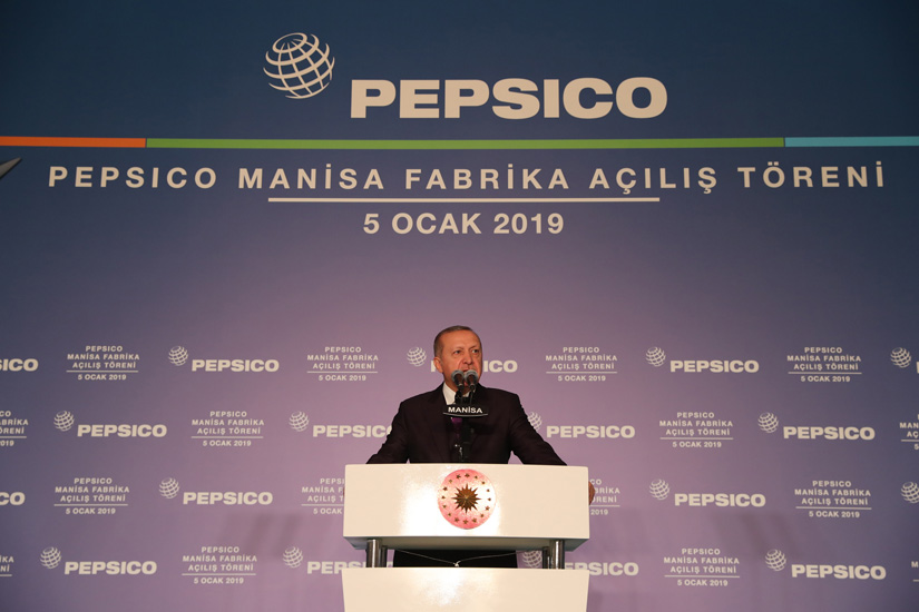 Dünyanın en büyük yiyecek ve içecek şirketlerinden PepsiCo, Türkiye'deki altıncı fabrikasını Manisa'da açtı. Fabrikanın açılışını Cumhurbaşkanı Recep Tayyip Erdoğan gerçekleştirdi.Manisa Organize Sanayi Bölgesi'ndeki tesis, Cumhurbaşkanı Recep Tayyip Erdoğan, TBMM Başkanı ve AK Parti İstanbul Büyükşehir Belediye Başkan Adayı Binali Yıldırım, Sanayi ve Teknoloji Bakanı Mustafa Varank ile Tarım ve Ormancılık Bakanı Bekir Pakdemirli'nin katıldığı törenle açıldı.
