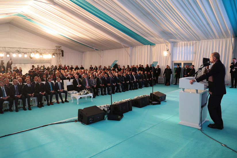 “YATIRIM ORTAMI BAKIMINDAN DÜNYADAKİ EN LİBERAL, EN GÜVENLİ ÜLKELERDEN BİRİYİZ”Türkiye’nin yine bu dönemde küresel iş yapma kolaylığı endeksinde ciddi mesafe aldığını ve hâlen yatırım ortamı bakımından dünyadaki en liberal, en güvenli ülkelerden biri olduğunu sözlerine ekleyen Cumhurbaşkanı Erdoğan, 2002-2017 yılları arasında Türk ekonomisini her yıl ortalama 5,8 oranında büyüttüklerini, kamu borçlarının millî gelire oranını yüzde 60’dan, yüzde 8,4’e düşürdüklerini hatırlattı. cumhurbaşkanı erdoğan kişi başına düşen geliri 3 bin 500 dolardan 11 bin dolara çıkardıklarını, gelir dağılımında adaletin tesisi noktasında da önemli iyileşmeler yaptıklarını kaydederek, 2002-2018 döneminde toplam 284 milyar liranın üzerinde sosyal yardım gerçekleştirdiklerini aktardı.Cumhurbaşkanı Erdoğan, sözlerinin devamında şunları söyledi: “Kısa zaman önce milyonlarca çalışanımıza sevindiren yeni asgari ücret rakamını açıklayarak emekçilerimize verdiğimiz önemi bir kez daha gösterdik. Bugüne kadar işçimizi, memurumuzu ve emeklilerimizi enflasyona asla ezdirmedik. Şunu büyük bir gururla ifade etmek isterim ki, 16 yıllık iktidarımızda belli çevreler değil, üreticisiyle, işçisi, esnafı, çiftçisiyle, ihracatçısı, sanatkârı, kamu kesimiyle 81 milyonun tamamı kazanmıştır. Ekonomimizin büyümesiyle özellikle büyüyen pastadan tüm kesimler haklarını almıştır. Bu dönemde ülkemizin kaynakları en verimli şekilde kullanılarak Türkiye’yi devler ligine taşıyacak sistemin altyapısı oluşturulmuştur. İnşallah bundan sonra Türkiye’nin hedeflerine ulaşması 2053 ve 2071 vizyonlarını hayata geçirmesi çok daha kolay olacaktır.”“SİYASİ İSTİKRAR VE GÜVEN OLMADAN EKONOMİDE BAŞARI SAĞLANAMAZ”“Ekonomik başarının formülü gayet basittir, siyasi istikrar ve güven olmadan ekonomide başarı sağlanamaz. Bir ülkede istikrar yoksa oraya yatırım da gelmez, yatırımcı da gelmez” diyen Cumhurbaşkanı Erdoğan, kendi iktidarları öncesinde koalisyon hükûmetleri dönemlerinde istikrarın olmadığını, 16 yıllık iktidarları döneminde ise hem parlamentoda, hem yürütmede bir istikrarın olduğunu dile getirdi.Cumhurbaşkanı Erdoğan, sözlerini şöyle sürdürdü: “Bir yerde istikrar varsa, demokrasi varsa, hukuk devleti tüm kurum ve kurallarıyla işliyorsa oranın gelişmesinin önünde de hiç kimse duramaz. Türkiye’nin son 16 senede elde ettiği ekonomik zaferlerin sırrı buradadır. Siyasette istikrarı sağladığımız, millî iradeden asla taviz vermediğimiz için hem kendi girişimcilerimiz hem de uluslararası sermaye ülkemizde uzun vadeli yatırımlara girebilmiştir. Üstelik bu başarıya terör saldırılarından darbe girişimine, sokak olaylarından ekonomik sabotajlara kadar pek çok operasyona rağmen ulaştık. Karşı karşıya bulunduğu sınama ne kadar büyük, ne kadar çetrefilli olursa olsun ülkemiz bu süreçte demokrasiye, hukuk devletine ve serbest piyasa ekonomisine bağlılığından asla taviz vermemiştir. Türk milleti 15 Temmuz gibi doğrudan istiklaline ve demokrasisine yönelen eylemleri bile suhuletle ve aklıselimle yönetmeyi başarmıştır.”Son 16 yılda Türkiye’de, gerçek anlamda millet-devlet dayanışmasının sağlandığına ve bu sayede Türkiye’nin her türlü operasyonun üstesinden geldiğine vurgu yapan Cumhurbaşkanı Erdoğan, “Şayet dünyanın bir başka ülkesi bizim son 5-6 yılda maruz kaldığımız onca saldırının sadece birkaç tanesine muhatap olsaydı emin olun hem sosyal hem de ekonomik bakımdan çökmenin eşiğine gelirdi” değerlendirmesinde bulundu.