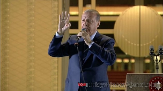 Cumhurbaşkanı Recep Tayyip Erdoğan, 'demokrasi nöbeti' için Cumhurbaşkanlığı Külliyesi bahçesinde toplanan vatandaşlara hitap etti.Cumhurbaşkanı Erdoğan'ın açıklamalarından satır başları şöyle:Cumhurbaşkanlığı Külliyesi'nden 79 milyon vatandaşımızı selamlıyorum. 15 Temmuz Ankara'nın da kurtuluş günüdür. Halkımız darbecilerin heveslerini kursaklarında bıraktı. Bizler asla hiçbir beşeri gücün önünde eğilmedik, eğilmeyiz. Sadece Rabbimizin huzurunda rükuda eğiliriz.Türkiye'yi kaosa sürüklemek isteyenlerin hevesi kursaklarında kaldı.Pazar günü milletimiz Yenikapı'da bir destan yazdı. Demokrasinin yeni kapısı açıldı. Demokrasi nöbetlerinin finalini burada, Ankara'da yapalım istedik. Milletimiz hala meydanları bırakmak istemiyor. Demokrasimize her gün, her saat sahip çıkacağız. İhanetin nereden geleceği belli olmuyor.Ruhunu Şeytana Satmış Şarlatanın Peşinden Gidenlerin Sonu Hüsrandırİhanet nöbetini FETÖ bırakıyor, PKK devralıyor. PKK bırakıyor DAEŞ devralıyor. Onlar ihanet nöbetlerinde birer ikişer geberecekler. Bizler demokrasi nöbetleri ile yola devam edeceğiz. Ruhunu şeytana satmış Pensilvanya'daki şarlatanın peşinden gidenlerin sonu hüsrandır.ABD'ye 85 Koli Dosya GönderdikEr veya geç Amerika Birleşik Devletleri de tercihini yapacak: Ya FETO ya Türkiye. 85 koli dosya gönderdi. Herhalde ABD artık 17 yıldır ülkesinde barındırdığı bu alçağı gönderecektir.Şehitler Tepesi Boş DeğilBunlar, Ömer Halisdemir gibi bir vatan evladının çıkıp kendilerini alınlarının ortasından vuracağını hesap edemedi. Bunların bütün hesap makinaları o gün kilitlendi. Tankların, namluların üzerine cesaretle gidenleri hesaplayamadılar. Bir Sabri gencimiz çıkıyor, kendisini tankın paletlerinin arasına atıyor. Şehitler tepesi boş değil, bunu hesap edemediler. Şehitler ölmez, vatan bölünmez.Biz bunlara (FETÖ) terör örgütü dedikçe, silahsız terör örgütü olur mu dediler. Milletin silahlarını millete çevirerek dünyanın en alçak örgütü olduklarını kanıtladılar.Geleceğiniz Varsa Göreceğiniz de Var!Kandil'dekiler açıklama yapıyor, kırsaldan şehre ineceklermiş. Geleceğiniz varsa göreceğiniz de var! FETÖ, PKK DAEŞ, YPG, PYD topunuz gelin!İdam Talebi Bir Kenara KoyulamazHalkın idam talebini parlamento bir kenara koyamaz. Parlamento idama 'evet' diyorsa ben bunu Cumhurbaşkanı olarak onaylarım.Demokrasi Nöbetlerine Ara VeriyoruzŞimdi artık bu virgülü kaldırıyoruz, demokrasi nöbetlerine ara veriyoruz. Siz tarih yazdınız.