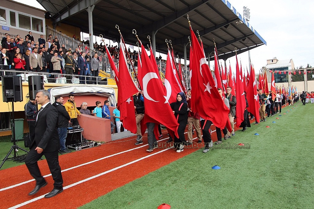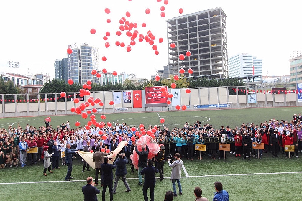 Cumhuriyet’in kuruluşunun 94’üncü yıldönümü Bağcılar’da düzenlenen coşkulu törenlerle kutlandı. Soğuk havaya rağmen ilçe sakinleri kutlamaların yapıldığı Mahmutbey Stadyumu’nu doldurdu. Törendeki konuşmalar, şiir ve gösterilerde 15 Temmuz unutulmadı. Stadyumda duygu dolu anlar yaşandı.Cumhuriyet’in 94’üncü yıldönümü Bağcılar’da düzenlenen coşku dolu törenle kutlandı. İlk olarak Bağcılar Meydan’da bulunan Atatürk Anıtı’na çelenk bırakıldı. Kutlama programına Bağcılar Belediyesi Mahmutbey Stadı’nda devam edildi. Soğuk havaya rağmen ilçe sakinleri bayraklarıyla tribünleri doldurdu. Vatandaşlar, “Şehitler ölmez vatan bölünmez” şeklinde slogan attı. “Bugün bir olma coşkusunun zirveye çıktığı gün”İstiklal Marşı okunmasının ve saygı duruşunun ardından bir konuşma yapan Bağcılar İlçe Kaymakamı Mustafa Eldivan, “Bugün bir olma coşkusunun zirveye çıktığı gün. Yönetim şekli olan Cumhuriyet, getirdiği çağdaş yaşamla Türk Milleti’nin önünü açmıştır. Cumhuriyetimiz ve ülkemiz üzerinde oynanan oyunlara karşı birlik ve beraberlik içinde tek yürek olmak zorundu olduğumuzu unutmamalıyız. Türkiye’nin güvenliği için fedakarca görev yapan güvenlik güçlerini selamlıyorum. 15 Temmuz 2016’da dünyaya ve içimizdeki hainlere karşı tüm gücünü gösteren bu milletin her ferdinin önünde saygıyla eğiliyor ve alkışlıyorum. Cumhuriyet Bayramınız kutlu olsun“ dedi. “Bordo bereli öğrenciler ’30 Kuş’ şiirini okudu”Dr. Kemal Naci Ekşi Anadolu Lisesi öğrencisi Enes Kadir Darı günün anlam ve önemini belirten konuşma yaptı. Selahattin Eyyubi Anadolu İmam Hatip Lisesi öğrencisi Mehmet Başboğa da “Vatan Destanı” isimli şiiri okudu. Başlarında bordo bere ve tişörtlerinde şehit Astsubay Ömer Halis Demir’in fotoğrafı bulunan Orhan Gazi Anadolu Lisesi’nden 30 öğrenci de sunum boyunca saygı duruşunda bulundu. Öğrenciler daha sonra hep bir ağızdan “30 Kuş” şiirini okudu. Bu sırada stadyumda duygu dolu dakikalar yaşandı. 15 Temmuz şehitleri anısına Türk Bayraklı 249 balon gökyüzüne bırakıldı. “Bağcılar’da 10 bin Türk bayrağı dağıtıldı”Daha sonra protokol tarafından ilçedeki ilk, orta ve liseler arasında düzenlenen şiir yarışmasında dereceye giren öğrencilere ödülleri verildi. İlçe Gençlik Spor Müdürlüğü ve İlçe Milli Eğitim Müdürlüğü öğrencileri ise spor gösterileri sundu. 29 Ekim Cumhuriyet Bayramı kutlamaları Bağcılar Anadolu Lisesi Bando Ekibi eşliğindeki resmi geçitle sona erdi.Kutlama törenine Bağcılar İlçe Kaymakamı Mustafa Eldivan, Bağcılar Belediye Başkanı Lokman Çağırıcı, AK Parti İlçe Başkanı İsmet Öztürk, İlçe Milli Eğitim Müdürü Mustafa Yılmaz, İlçe Emniyet Müdürü Murat Taner, İlçe Müftüsü Musa Uzun, Garnizon Komutanlığı adına Piyade Albay Bahadır Selvi, öğrenciler, öğretmenler ve çok sayıda vatandaş katıldı.Öte yandan Bağcılar Belediyesi desteğiyle hazırlanan sivil toplum inisiyatifi Gönül Bağı projesi üyeleri de farklı bir etkinlik gerçekleştirdi. Gönül Bağı üyeleri Cumhuriyet Bayramı nedeniyle ilçe genelinde evlere, işyerlerine, esnafa ve sokaktaki vatandaşlara Türk bayrağı dağıttı. Gün boyunca süren etkinlikte 10 bin bayrak dağıtıldı.