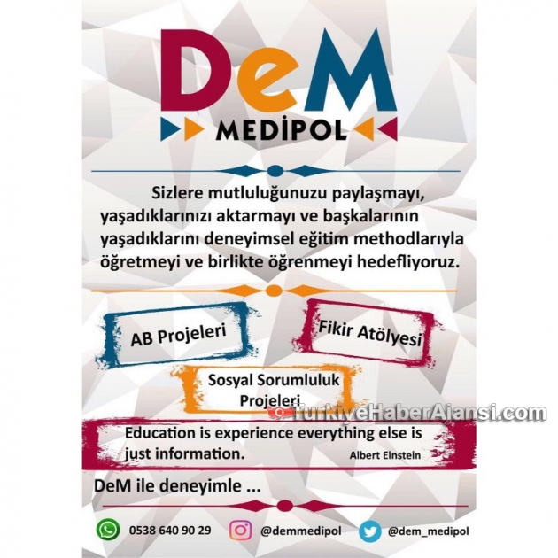 23 Nisan Ulusal Egemenlik ve Çocuk Bayramı nedeniyle DeM Gençlik tarafından çocuklara yönelik çok özel bir etkinlik düzenlendi...2015 yılında Marmara Üniversitesinde DeM Marmara öğrenci kulübünün kurulmasıyla ilk adımı atılan DeM Gençlik tarafından düzenlenen 23 Nisan Şenliği çocuklarının coşkulu gösterileriyle kutlandı.Farabi Talks'un öncüsü Cihad Furkan Eliaçık'ın katkılarıyla düzenlenen, 23 Nisan Ulusal Egemenlik ve Çocuk Bayramı kutlamalarına, okul müdürleri, öğretmenler ve vatandaşlar da katıldı.Kutlamalarda, Türkiye Cumhuriyeti’nin kurucusu Mustafa Kemal Atatürk ve silah arkadaşları başta olmak üzere tüm şehitler için bir dakikalık saygı duruşunun ardından İstiklal Marşı okundu. Türkiye Büyük Millet Meclisi’nin (TBMM) açıldığı tarih olan 23 Nisan 1920’nin taşıdığı önem dile getirildi. Çeşitli okul öğrencileri, şiirler okudu ve öğrencilerin gösterileri ilgiyle izlendi. Öğrenciler, Şişme Oyun Parkında doyasıya eğlendi, nostaljik oyunlar öğrendi, çuval yarışı, mendil kapma, balon patlatma oyunları oynadı. Etkinlik, vatandaşlar ve çocuklar tarafından ilgiyle izlendi.Farabi Talks Hakkında! ... Farabi Talks, 2 oturumdan oluşan ve üniversite öğrencilerinin hayatlarına evrensel dil olan İngilizceyle dokunarak geleceğin vizyonlarına ışık tutmayı hedefleyen bir platformdur.Üniversite öğrencilerine İngilizce konuşma becerilerini geliştirmelerine olanak sağlayan ve aynı zamanda geleceklerine ilk oturumla dokunmaya çalışan bir programdır ve İstanbul Medipol Üniversitesi'nde gerçekleşmektedir.İlk oturumda, her hafta farklı konularda farklı konukların sunumlarını gerçekleştirmek üzere davet edilmesiyle onların sunumları gerçekleşir.İkinci oturumda ise, tamamen ücretsiz olan 8 haftalık programa kabul alan öğrencilerin oluşturduğu istasyon gruplarının; her hafta Montör’leri tarafından belirlenen konularda “brainstorming” beyin fırtınası şeklinde gerçekleşir.Tamamının İngilizce olduğu programda amaç ise, İngilizce atmosferinin oluşturulduğu doğal bir platformda, tamamen gönüllü akademisyen ve yabancı hocaların/uzmanların profesyonel dokunuşlarıyla İngilizce öğretimine kişilerin aynı zamanda hayatlarına dokunarak yeni bir yorum getirmektir.DeM Gençlik / DeM Medipol Hakkında! ... DeM Gençlik’in ilk adımı 2015 yılında Marmara Üniversitesinde DeM Marmara öğrenci kulübünün kurulmasıyla atılmıştır.Deneyimsel Eğitim Medipol Kulübü (DeM Medipol) 2016-2017 Eğitim-Öğretim yılında Medipol Üniversitesi bünyesinde kurularak faaliyet hayatına başlamıştır.DeM Gençlik büyümeye, güçlenmeye ve hayatları değiştirmeye devam ediyor.