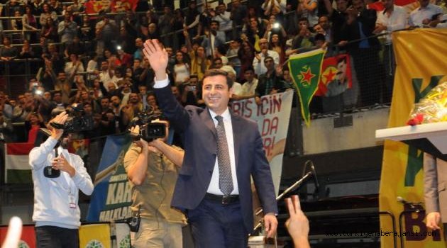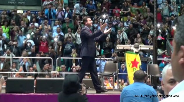 HDP Eş Genel Başkanı Selahattin Demirtaş, Almanya'nın Frankfurt'daki Fraport Arena'da düzenlenen "Dayanışma Gecesi'nde" bir konuşma gerçekleştirdi.DEMİRTAŞ'I PKK'LILAR KORUDUGündeme ilişkin değerlendirmelerde bulunan Demirtaş'ın konuşmasından çok PKK'lı korumları dikkat çekti.PKK BAYRAKLARININ ÖNÜNDE KONUŞTUPKK'nın sözde bayraklarının asıldığı salonda konuşan Selahattin Demirtaş, "'Kürtler bu ülkeye ne kattı?' diyenler iyi duyun. Kürtler kendi vatanlarını kattılar Türkiye'ye, Kürdistan'ı kattılar. Daha ne yapsınlar?" ifadelerini kullandı.