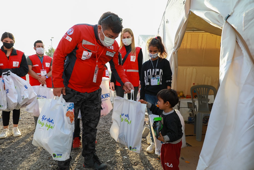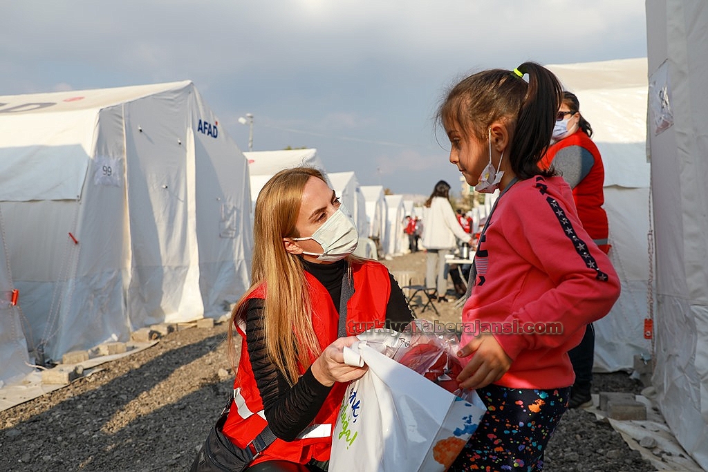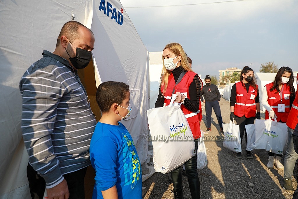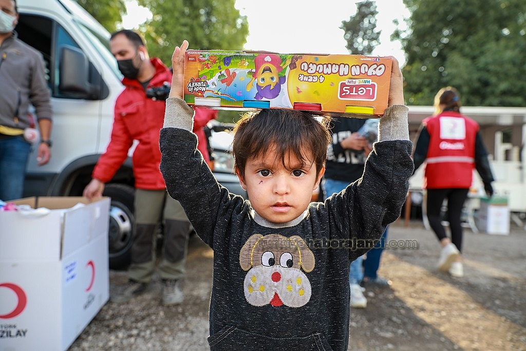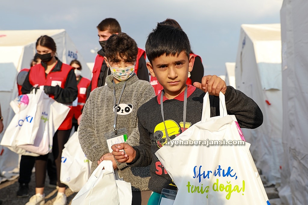 Süzer Vakfınca temin edilen uyku tulumu ve kışlık giysiler, çadır kentlerdeki çocuklara Türk Kızılay aracılığıyla dağıtıldı.