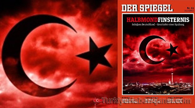 Almanya’da yayımlanan haftalık Der Spiegel dergisi Türkiye’yi bir yıl içinde üçüncü kez kapak konusu yaptı. “Hilal tutulması” başlığıyla Almanya ile yaşanan toplantı krizinin yansımalarını haberleştiren dergi, alt başlık olarak “Erdoğan’ın Almanya’sı- Bir bölünme hikayesi” ifadelerine yer verdi.Türkiye’de 16 Nisan’da yapılacak halk oylamasının Türkiye ve Almanya’daki yansımalarını işleyen dergi, yaptığı röportajlarla referandum tartışmalarının toplumu böldüğünü, bölünmenin Almanya’daki Türklere de yansıdığı tezini işliyor.Der Spiegel, 2 Nisan tarihli sayısında “Korkunç Dost”, 1 Ağustos’ta ise “Özgürlüğünü kaybeden ülke” başlığıyla Türkiye ve Cumhurbaşkanı Erdoğan’ı kapak konusu yapmıştı.