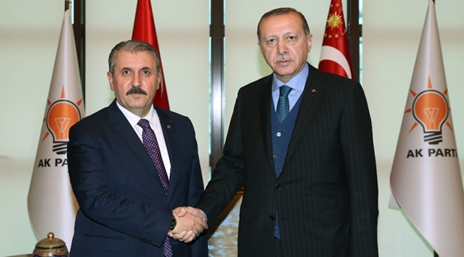 Destici, ziyaretin ardından, AK Parti Genel Merkezi önünde yaptığı açıklamada, Erdoğan ile olumlu bir görüşme gerçekleştirdiklerini belirtti.Türkiye'nin kritik süreçlerden geçtiğini ifade eden Destici, BBP olarak kuruldukları günden bu yana yapıcı, yol gösterici, sorumlu bir muhalefet anlayışıyla davrandıklarını, doğru kimden gelirse gelsin yanında durduklarını, yanlışı yapanı uyardıklarını kaydetti."BBP, SEÇİLMİŞ YÖNETİCİLERİN YANINDADIR"Destici, "Bugün ülkemiz ABD'nin başını çektiği emperyalist, siyonist, terörist, hain, iş birlikçi bir grubun açık tehdidi ve saldırısı altındadır. Bu şartlar altında BBP, devletinin, ülkesinin ve seçilmiş yöneticilerin yanındadır. Sadece biz değil, bütün siyasi partileri Meclis'teki, Meclis dışındaki, sivil toplum örgütlerini, basın mensuplarını, toplumumuzun her bir ferdini de burada birlik olmaya, birlikte hareket etmeye ve bu tezgahları bozmak için el ele vermeye davet ediyorum." diye konuştu."ERDOĞAN'IN İZLEDİĞİ SURİYE POLİTİKASINI DOĞRU BULUYORUZ"Suriye'nin kuzeyinde yaşananların Türkiye için birinci tehdit olduğuna işaret eden Destici, Cumhurbaşkanı Erdoğan'ın liderliğinde hükümetin ve devletin izlediği politikaları doğru bulduklarını aktardı.Destici, Rusya ile Soçi'de yürütülen görüşmelerde etnik ve mezhepsel temelli bir paylaşımı Türkiye'nin asla kabul etmeyeceğinin açıklandığını hatırlatarak, kendilerinin de aynı görüş ve düşüncede olduklarını bildirdi.Hem içeride hem dışarıda teröre karşı verilen ciddi mücadelenin de yanında olduklarını ifade eden Destici, bu kararlılığın devam edeceğini bildiklerini, bundan memnuniyet duyduklarını kaydetti."ÇOK FAYDALI VE YARARLI BİR GÖRÜŞME OLDU"16 Nisan referandumuyla Türkiye'nin yeni bir sisteme geçtiğini, sistemin işleyebilmesi için de uyum yasalarının çıkarılması gerektiğini belirten Destici, bununla ilgili belli yasaların çıktığını, çoğunun ise henüz Meclis'e gelmediğini anımsattı.Bütçe görüşmelerinden sonra bu uyum yasalarının Meclis'e geleceği beklentisi içinde olduklarını vurgulayan Destici, burada önceliklerinin Siyasi Partiler Yasası ve Seçim Kanunu'nun demokratikleştirilmesi ve yargı ile ilgili birtakım düzenlemeler olduğunu ifade etti.Destici, bu konularla ilgili düşüncelerini ve partilerinin hazırladığı öneri metnini Cumhurbaşkanı Erdoğan ile paylaştıklarını anlattı.Görüşmelerinin son bölümüne Başbakan Binali Yıldırım'ın da dahil olduğunu aktaran Destici, çok faydalı ve yararlı bir görüşme yaptıklarını bildirdi.SEÇİM İTTİFAKI AÇIKLAMASI: ORTAK BİR ADAY LİSTESİ HAZIRLANSINCumhurbaşkanı Erdoğan ve Başbakan Yıldırım ile seçim kanununa ilişkin önerilerini de paylaştıklarını anlatan Destici, barajın kaldırılması ile seçim ittifakının yasal hale getirilmesini önerdiklerini ifade etti.Destici, seçim ittifakı yapan partilerin kendi amblemleri ile gözükmesini, ortak bir milletvekili aday listesi hazırlanmasını, seçimden sonra hazırlanan koalisyonun seçimden önce olmasını, seçim barajının tamamen sıfırlanması tavsiyelerinde bulunduğunu belirtti.Milletvekili sayısının 600'e çıkacağını anımsatan Destici, "Bunun 500'ünün daraltılmış haliyle seçilmesi, ön seçimli ve tercihli sistemde, diğer 100'ünün de Türkiye milletvekili olarak seçilmesi önerilerimiz arasında." dedi.Bölgelerdeki milletvekili sayısının nüfus sayısıyla değil, seçmen sayısıyla belirlenmesi gerektiğini savunan Destici, "Adil sonuç almak istiyorsak bunu yapmamız gerekiyor." ifadelerini kullandı."YENİ BİR SİYASİ PARTİLER YASASI YAPILSIN"Uyum yasaları sürecinin bir fırsat olduğunu değerlendiren Destici, "Siyasi partiler yasasındaki antidemokratik uygulamalar kaldırılsın, hatta mümkünse yasa tamamen lağvedilerek yeni bir siyasi partiler yasası yapılsın. Partiler kapatılmasın. Sayın Cumhurbaşkanının bu konudaki kararlılığını gördüm." diye konuştu.Seçim yasası değişecek ise demokratik olması, temsilde adaleti sağlaması gerektiğini bildiren Destici, "Yürütmede istikrar zaten sağlanmış oldu. Onun bir ayağı da kırık kalmasın. Ülkemiz, milletimiz adına ümitliyiz." değerlendirmesinde bulundu.Destici, Türkiye'nin üzerinde kara bulutlar olduğunu kaydederek, şunları söyledi:"Ama bu cephede havalar olumlu. Siyasi partiler yasası, seçim kanunu. Bu uyum yasalarıyla ilgili olan süreçte havaların olumlu gittiğini ifade edebilirim. Biz önerilerimizi paylaştık. Bundan sonrası Sayın Cumhurbaşkanı'nın, AK Parti'nin ve Meclis'teki diğer partilerin görevi. Biz inandığımızı söylemeye devam