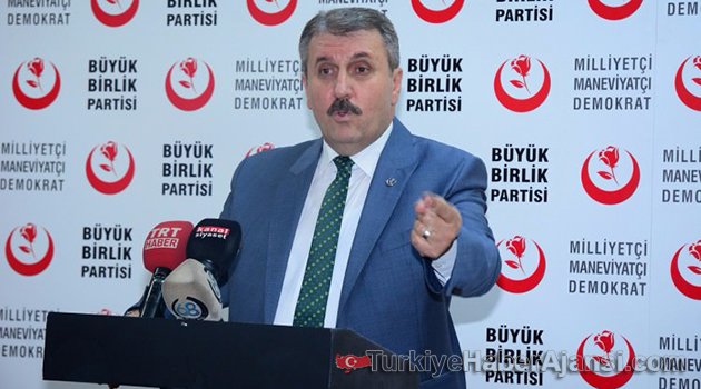 Büyük Birlik Partisi (BBP) Genel merkez binasında haftalık basın toplantısında ülke ve dünya gündemini değerlendiren BBP Genel Başkanı Mustafa Destici sözlerine şehitleri anarak başladı. Destici, “Diyarbakır'da şehitlerimiz var. Şehitlerimize Allah'tan rahmet diliyorum. Mekânları cennet olsun. Yaralı Gazilerimize acil şifalar diliyorum. Şu an bölgede kahramanca mücadele eden askerlerimizin, polislerimizin Rabbim yar ve yardımcısı olsun” dedi."TÜRKİYE'NİN BU SİLAHLARI İMHA ETMESİ GEREKİYOR"Amrika Birleşik Devleti’nin PYD ve YPG’ye 100 tır silah yardımı yaptığına değinen Destici, “Güya bizim sözde müttefikimiz, stratejik ortağımız olan Amerika Birleşik Devletleri dün 100 tır PYD ve YPG’ ye silah yardımı gönderdi. Hepimiz bilmeliyiz ki; bu silahlar bugün DEAŞ için kullanılıyor olabilir. Ama hiç şüpheniz olmasın ki yarın Türkiye'ye doğru kullanılacaktır. Amerika Birleşik Devletleri silahları PYD’ ye teslim ettiği noktada ve PYD’nin eline geçer geçmez Türkiye'nin bunları imha etmesi gerektiğini bir kere daha altını çizerek vurguluyorum. Çünkü Amerika Birleşik Devletleri'nin orada yaptığı sadece DAEŞ’e karşı mücadele eden PYD’yi YPG’yi ya da şirin adıyla Suriye demokratik güçlerini desteklemek değil, orada kendisine bir askeri güç, askeri üst hazırlamaktır. Bugün DAEŞ’e karşı kullanmaktadır. Yarın da Türkiye'ye karşı kullanılacağından hiçbirimizin şüphesi olmaması gerekir” diye konuştu.