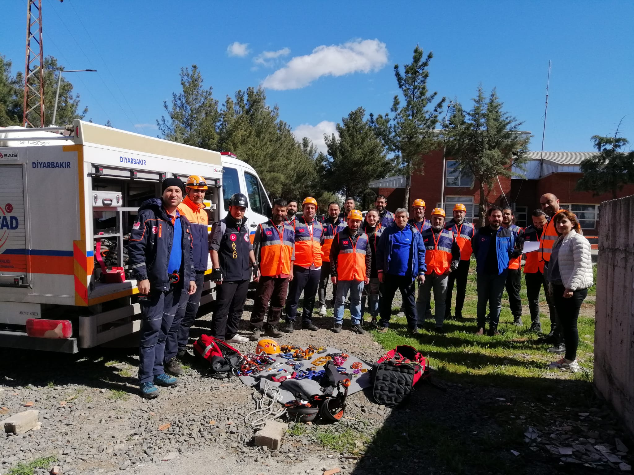 '2022 Afet Tatbikat Yılı' kapsamında planlanan 'Diyarbakır Kentsel Arama Kurtarma Ekipleri Tatbikatını tamamlayan Diyarbakır AFAD, destek gönüllü eğitimlerine devam ediyor.