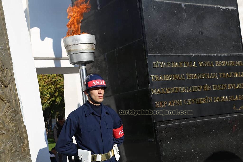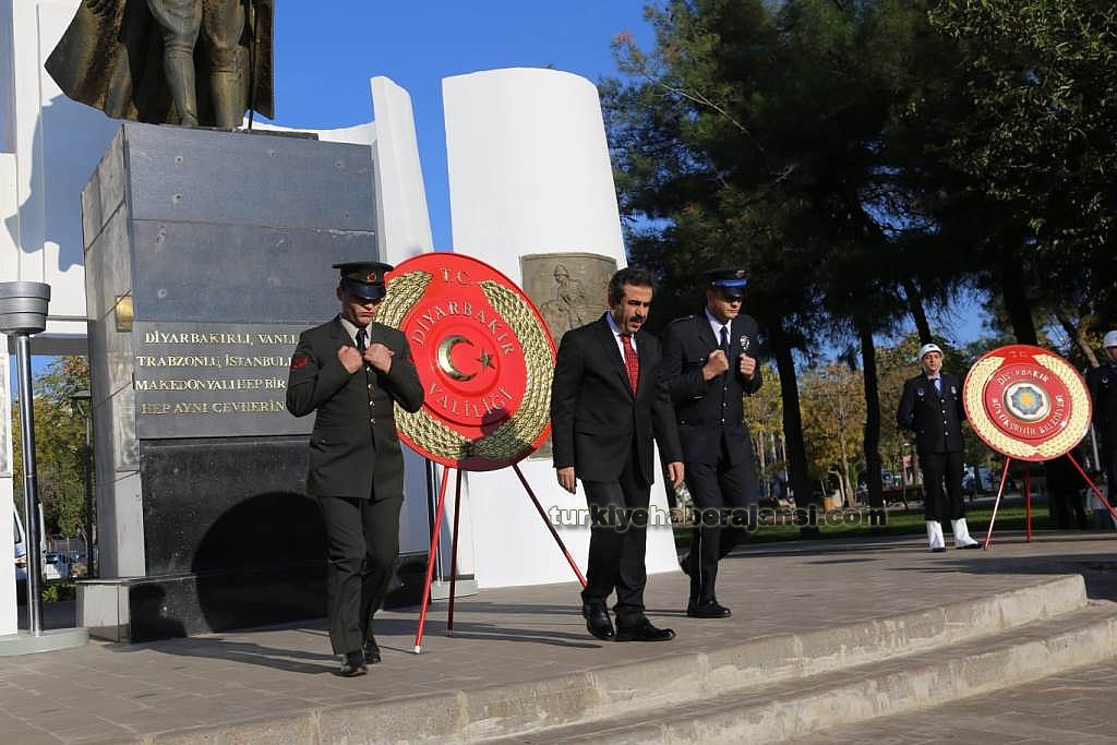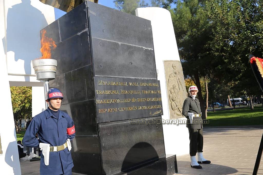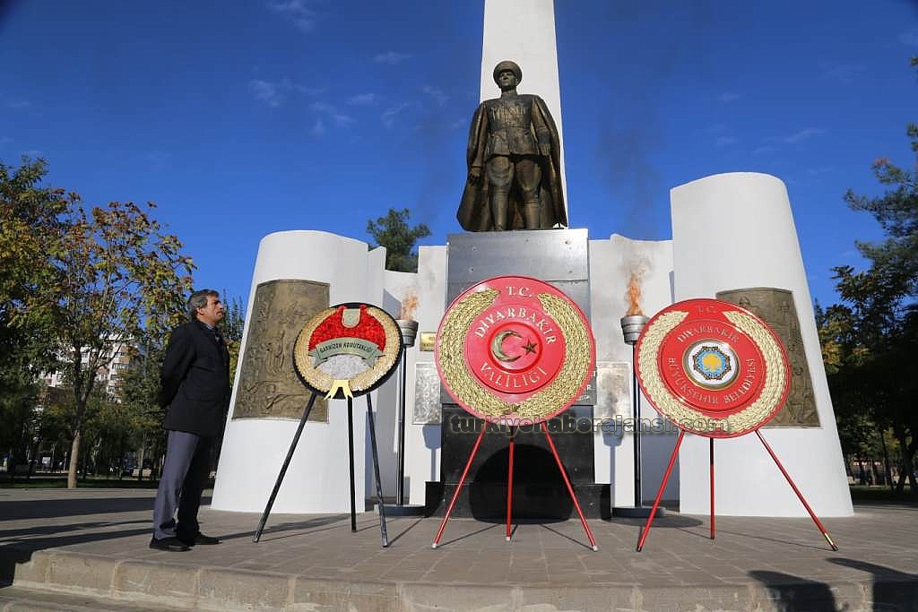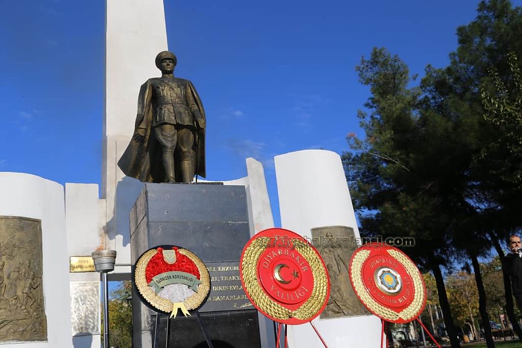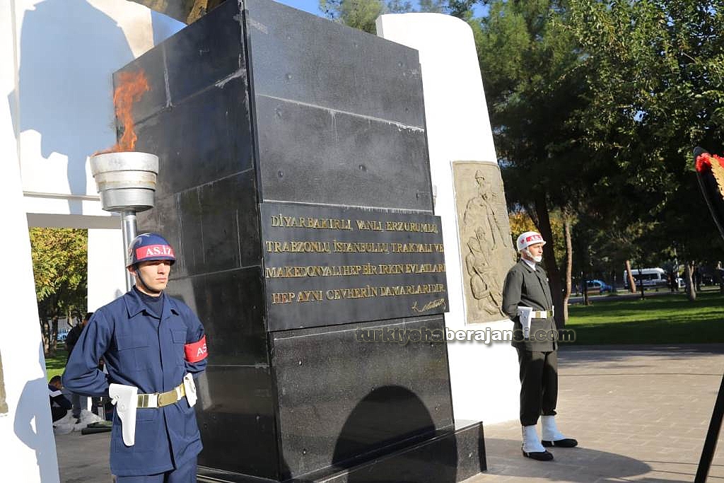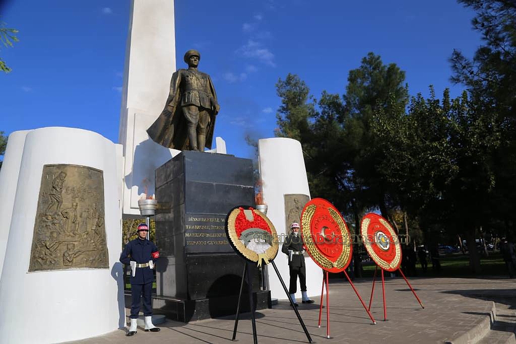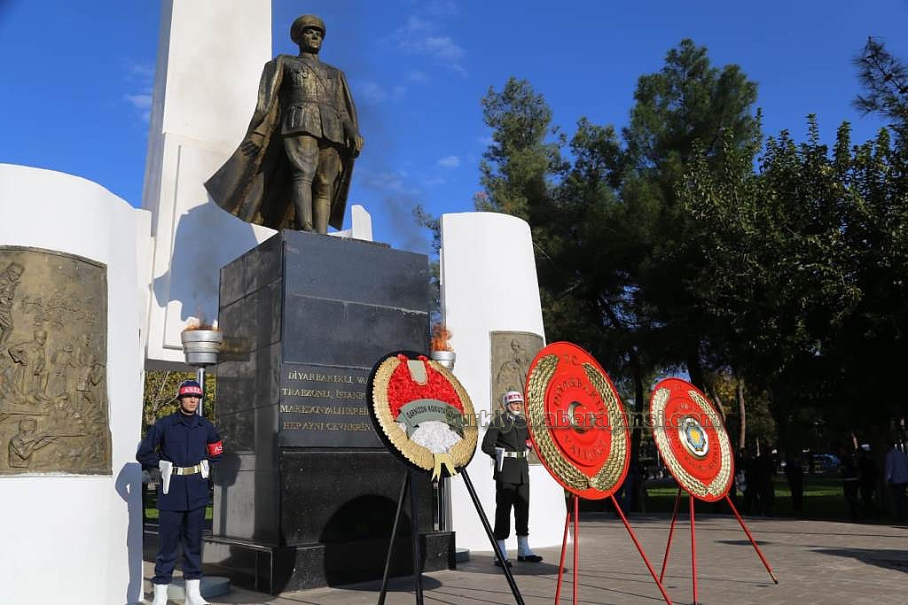 Kenan Özgüven / Diyarbakır Türkiye Cumhuriyeti kurucusu Mustafa Kemal Atatürk’ün 80’inci ölüm yıl dönümünde yurt genelinde anma törenleri düzenledi ve Diyarbakır'da da çeşitli törenlerle anıldı.Diyarbakır'da merkez Yenişehir ilçesinde bulunan Anıt Park'ta düzenlenen törene, Diyarbakır Valisi Hasan Basri Güzeloğlu, AK Parti Diyarbakır milletvekilleri Ebubekir Bal ve Oya Eronat, Diyarbakır Büyükşehir Belediye Başkan Vekili Cumali Atilla, 7. Kolordu ve Garnizon Komutanı Korgeneral Sinan Yayla, Jandarma Bölge Komutanı Tümgeneral Halis Zafer Koç, Cumhuriyet Başsavcısı Kamil Erkut Güre, kamu kurum müdürleri ve vatandaşlar katıldı.Atatürk Anıtı'na çelenk sunulmasının ardından, Ulu Önder Atatürk'ün hayatını kaybettiği saat 09.05'te 2 dakikalık siren eşliğinde saygı duruşunda bulunuldu. Buradaki anma programı, İstiklal Marşı'nın okunması ve Türk bayraklarının yarıya indirilmesiyle sona erdi.Anıt Park'taki törenin ardından, Cahit Sıtkı Tarancı Kültür Merkezi'nde devam eden anma programı da saygı duruşu ve İstiklal Marşı'nın okunması ile başladı. Gazi Mustafa Kemal Atatürk'ün sivil ve askeri hayatını içeren sunumlarla devam eden anma programında öğrenciler 10 Kasım nedeniyle hazırladıkları şiirleri okudu. Atatürk’ü anma programı, Güzel Sanatlar Lisesi öğrencilerinden oluşan koro tarafından seslendirilen şarkılarla son buldu.