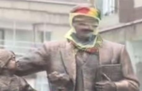 Diyarbakır'daki KCK gösterilerinde Atatürk büstüne Öcalan maskesi taktılar!