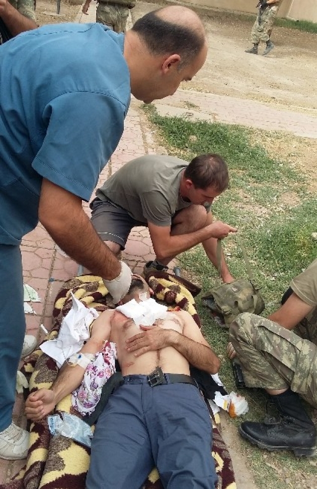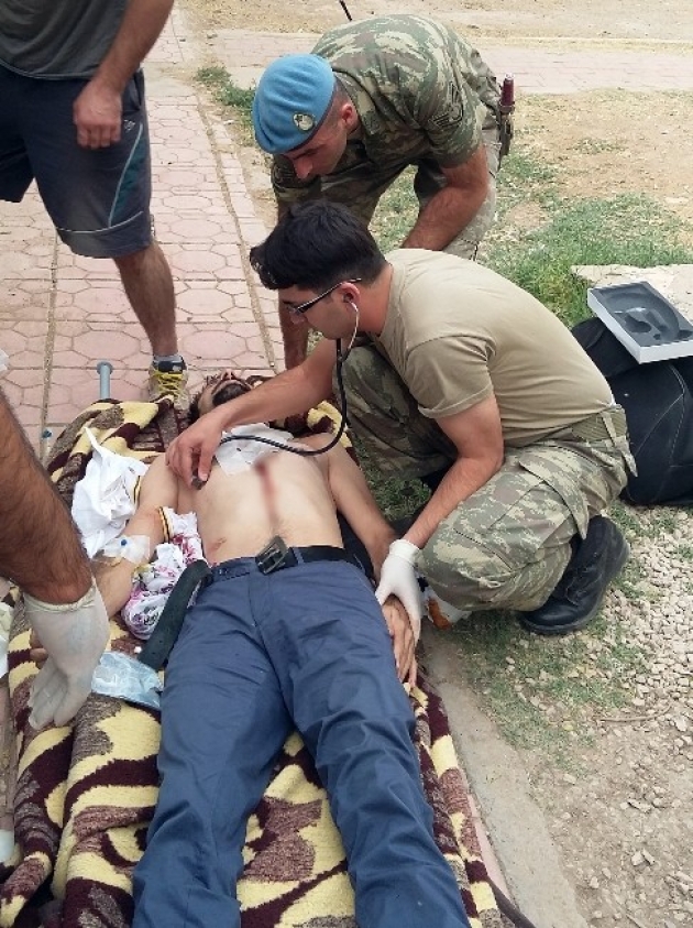 Terör örgütü PKK, sivil halkı hedef almaya devam ediyor. Sokağa çıkma yasağının devam ettiği Mardin'in Nusaybin ilçesinde çıkan çatışmada balkondayken bölücü terör örgütünün kurşunlarına hedef olarak ağır yaralanan bir vatandaşın ailesi askerden yardım istedi. İlk müdahaleyi iki tabip subayın yaptığı olayda yaralı, iki aşamalı planla hastaneye götürüldü.ATEŞ AÇILDIGenelkurmay kaynaklarından alınan bilgiye göre, Mardin'in Nusaybin ilçesinde bozulan huzur ve asayiş ortamının tekrar tesis edilmesi amacıyla güvenlik görevlileri tarafından başlatılan operasyon sırasında dün saat 15.00'de Çağ Caddesi'nde güneyden kuzeye ilerleyen güvenlik güçlerine bölücü terör örgütü mensupları tarafından belirlenemeyen bir istikametten ateş açıldı.BALKONDA KURŞUNLARA HEDEF OLDUOlayın ardından bir grup vatandaş, 2. Hudur Tabur Komutanlığı Korgeneral Mehmet Kenan Dalbaşar Kışlası Nizamiyesi yakınına gelerek, bölücü terör örgütü mensupları tarafından açılan ateş sonucu balkonda bulunan Özgür Çıray'ın omuz altından ağır şekilde yaralandığını beyan ederek acil yardım talebinde bulundu.YOLLAR KAPALIYDI ÇÜNKÜ...Derhal olay yerine giden askerler, yaralıyı askeri birliğe taşıdı. Yaralıya ilk müdahaleyi askeri birlikteki iki tabip subay yaptı. Müdahale sırasında eşi ve oğlu yaralıya refakat etti. İlçe Emniyet Müdürlüğü ile 2. Hudut Tabur Komutanlığı arasında yapılan koordinasyon neticesinde şehir içerisindeki yollarda barikat bulunduğu için hastaneye nakli mümkün olmayan yaralının Kapı Hudut Karakol Bölgesi'nden 112 Acil Servis ambulansına götürülmesi koordine edildi.2 AŞAMALI PLANBu amaçla yaralının ilk olarak kirpi aracıyla Korgeneral Mehmet Kenan Dalbaşar Kışlası'ndan Kapı Hudut Karakolu'na tahliyesi sağlandı. Yaralı, buradan Nusaybin ilçe merkezine açılan Gümrük Kapısı bölgesinden saat 15.55'te 112 Acil Servis ambulansına götürüldü.