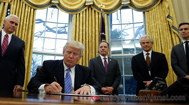 ABD Başkanı Donald Trump, Trans-Pasifik Ortaklığı (TPP) ticaret anlaşmasından ABD'nin çekilmesi için başkanlık emri (executive order) imzaladığını duyurdu.Beyaz Saray'da düzenlenen basın toplantısında, Trump, seçim kampanyasında vadettiği üzere, Asya-Pasifik bölgesinde toplam 12 ülkenin dahil olduğu TPP anlaşmasından ABD'nin çekilmesi için bir başkanlık emri imzaladı.Trump, TPP'in "Kötü bir anlaşma" olduğunu ifade ederek, ABD'nin TPP'den ayrılması konusunda, "Bunu uzun süredir konuşuyorduk. Az önce gerçekleştirdiğimiz icraat Amerikalı işçiler için önemli." ifadesini kullandı.TPP anlaşması ABD'nin eski başkanı Barack Obama tarafından iki yıl boyunca müzakere edilmiş, ancak ABD Kongresi tarafından onaylanmamıştı.Uzmanlar, ABD'nin TPP'den çekilmesinin ülke ekonomisine doğrudan etkisinin olmayacağını belirterek, Trump'ın Obama'dan çok farklı ekonomik ve ticari politikalar izleyeceğini vurguluyor.Trump, ayrıca, pazartesi günü imzaladığı diğer başkanlık emirlerinde ABD hükümetinde çalışan kişilerin görevlerinden ayrılması durumunda 5 yıl boyunca lobicilik faaliyetlerinde bulunmasını engelledi.Bir diğer başkanlık genelgesiyle de kürtaja destek veren uluslararası gruplara federal yardım yapılmasını yasaklayan Trump, ayrıca, ABD silahlı kuvvetleri hariç, federal kurumlara yapılacak tüm işe alımları dondurma kararı aldı.