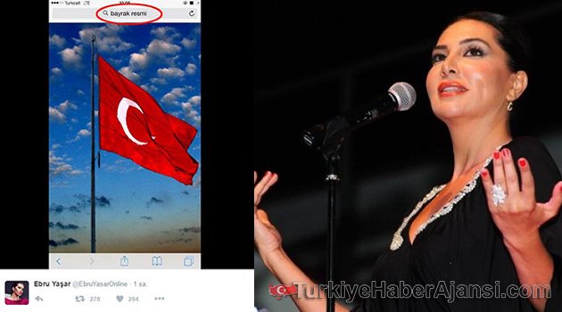 30 Ağustos Zafer Bayramı vesilesiyle Google'dan "bayrak resmi" yazıp kaydettiği fotoğrafı ham haliyle paylaşan Ebru Yaşar sosyal medyada takipçileri tarafından eleştirildi.