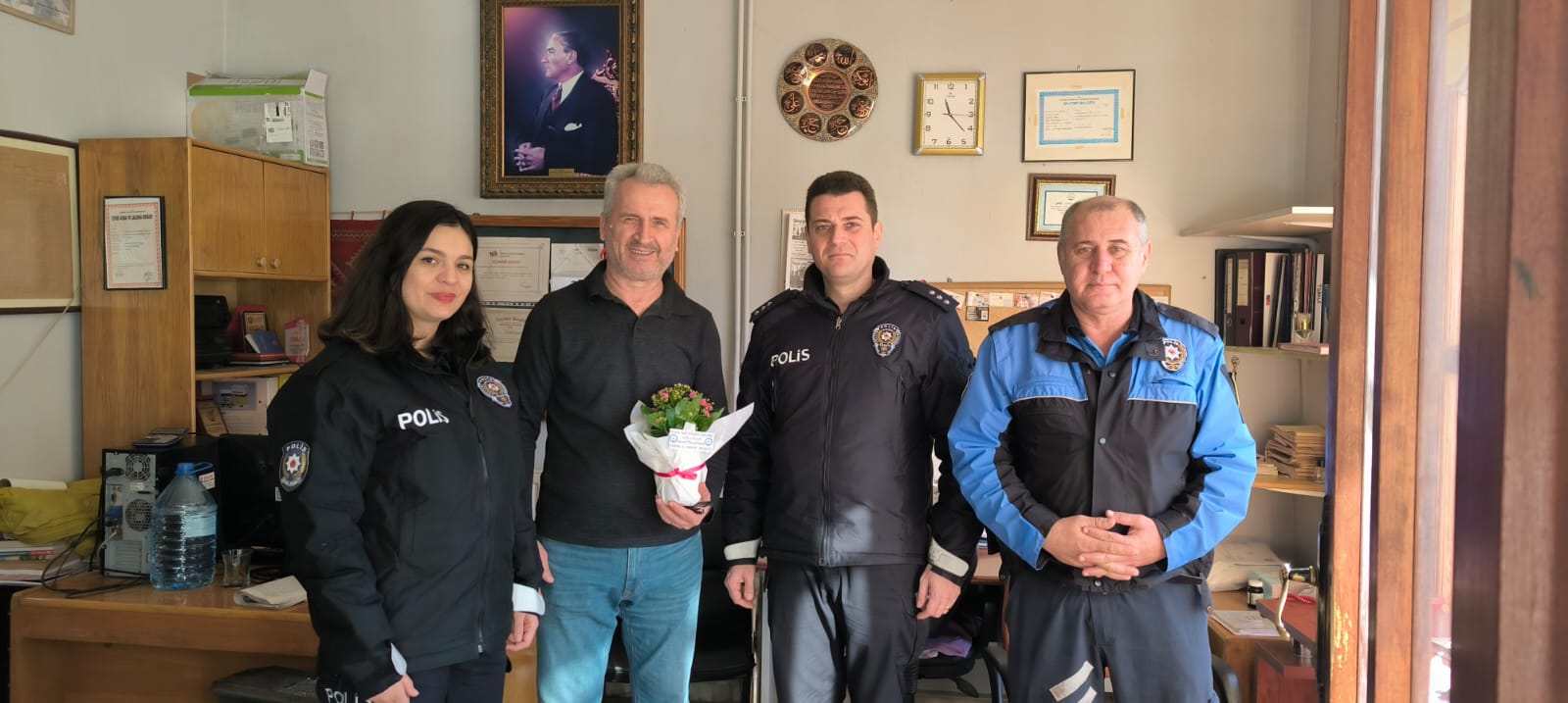 ÇİÇEK TAKDİM EDİLDİ Hudut Gazetesi çalışma ofisi ziyaretlerinde Sorumlu Yazı İşleri Müdürü Mehmet Şeleci ile görüşen Şube Müdürlüğü personeli, gazete çalışanlarının 10 Ocak Çalışan Gazeteciler Günü’nü kutladı. Kendisine çiçek takdim edildi.