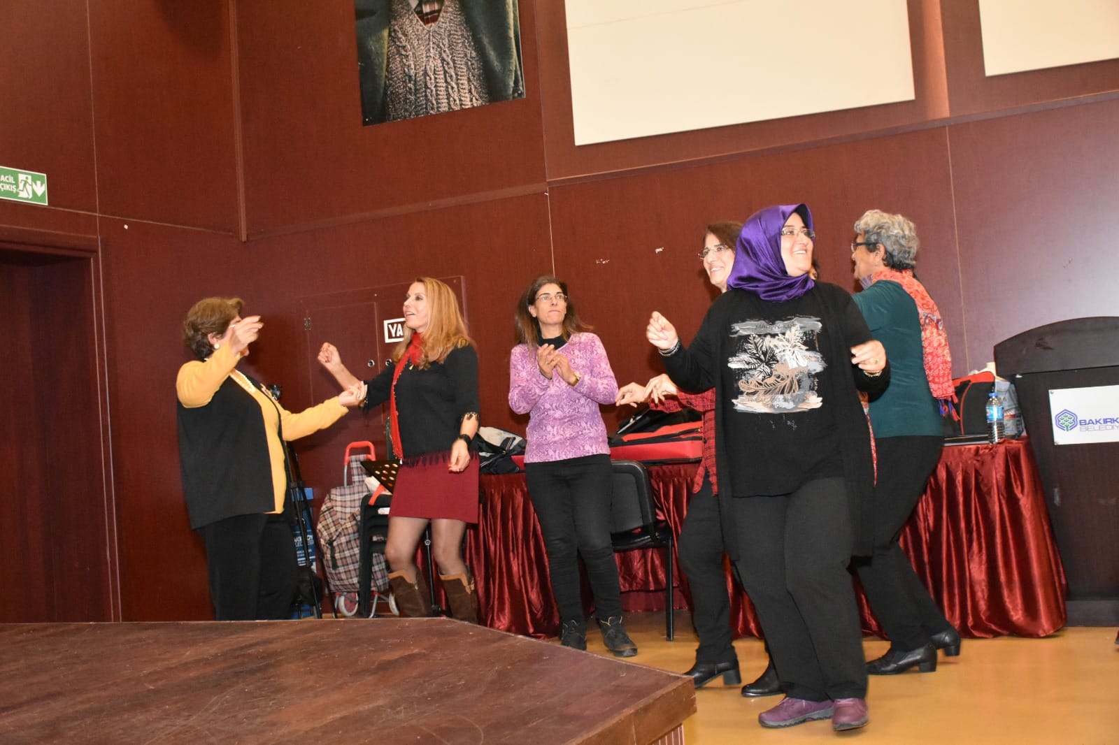 KORO ÜYESİ KADINLAR TÜRKÜLER EŞLİĞİNDE GÖNÜLLERİNCE EĞLENDİ Bakırköy Ataköy Tarık Akan Konferans Salonu'nda düzenlenen etkinlikte, sanatçı Celal Yılmaz hem saz çaldı, hem de Türk Halk Müziğinin en seçkin eserlerini geceye katılan müzikseverler için seslendirdi.Bakırköy Yedi Bölge Türk Halk Müziği Korosu üyeleri de solo olarak sergiledikleri performans ile gecede davetli polis emeklileriyle ile müzik severlere duygulu anlar yaşattı.Etkinlik sona erince, POLEMDER Şube Başkanı Muharrem Karaağaç sanatçı Celal Yılmaz'a kendilerine gecede muhteşem bir müzik ziyafeti verdiği için tebrik ederek başarılı çalışmalarında kolaylıklar diledi.