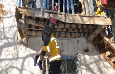 Karaman'da, çöken balkonun tahtaları arasında sıkışan engelli kadın, itfaiye ve sağlık ekiplerinin uğraşları sonucu kurtarıldı.