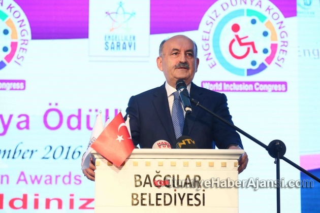 Bağcılar Belediyesi tarafından “Engelsiz Dünya Kongresi’ kapsamında düzenlenen, "Farkındalık", "Eğitim", "Erişilebilirlik", "Engelli İstihdamı" kategorilerinde önemli hizmetlerde bulunan iş, sanat ve basın dünyamızın tanınmış isimleri ile kurum ve kuruluşlarına ödülleri verildi.TÜRKİYE HABER AJANSI’NA ÖDÜL4 kategoride 45 kurum, kuruluş ve isme verilen "Engelsiz Dünya Ödülleri" Çalışma ve Sosyal Güvenlik Bakanı Mehmet Müezzinoğlu’nun da katıldığı törenle sahiplerini buldu... Ödül töreninde Cumhurbaşkanı Recep Tayyip Erdoğan’ın resmini çizen ve Cumhurbaşkanı tarafından telefonla aranarak tebrik edilen engelli Gülşah Yağmur Yazıcı özel ödüle layık görüldü.Engelli Haberleri Farkındalığı alanında Türkiye Haber Ajansı da ödüle layık görülen medya kuruluşları arasında yer aldı… Ödülü; Türkiye Haber Ajansı YKB ve Genel Yayın Yönetmeni Ahmet Kaplan, Çalışma ve Sosyal Güvenlik Bakanı Mehmet Müezzinoğlu ve Bağcılar Belediye Başkanı Lokman Çağırıcı’nın elinden aldı.Türkiye Engelli Kadınlar Farkındalığı ödülü ise Sabancı Vakfı Mütevelli Heyeti Üyesi Dilek Sabancı'ya verildi.“AK PARTİ’NİN KURULUŞ FELSEFESİNDE ENGELLİLER VAR”Engelsiz Dünya Ödülleri töreninde bir konuşma yapan Çalışma ve Sosyal Politikalar Bakanı Mehmet Müezzinoğlu, AK Parti’nin kuruluş felsefesindeki üç konu başlığından birisinin engelliler olduğunu söyledi.Halkın, o dönem feraset göstererek Kurucu Genel Başkan olan Cumhurbaşkanı Recep Tayyip Erdoğan’ın vicdan ve merhamet sahibi bir lider olduğunu fark ettiğini ifade eden Müezzinoğlu, 2002’de AK Parti’yi iktidara getirdiğini anlattı.İl Başkanlığı döneminde engellilere Ramazan ayındaki programlarda ağırladıklarını da anlatan Müezzinoğlu, “Hepimizin imkanları var ama bu toplumun engellisini evinde yalnız annesi, babası ve yakınıyla baş başa bırakan bir anlayışı reddetmemiz lazım, demiştim. Bu Kongre’de de başlıklardan birisi bu konudan oluşuyor.” dedi.Müezzinoğlu, ayrıca ‘muhtar olamazsın denilen’ ancak Başbakan ardından Cumhurbaşkanı olan Recep Tayyip Erdoğan’a da millete yönelik farkındalık oluşturmada gösterdiği duyarlılık dolayısıyla teşekkür etti.Önceden, laik, demokratik bir hukuk devleti olmasına rağmen ülkede fakirin, hastanın ve engellinin halini soranın olmadığını da vurgulayan Müezzinoğlu, “Evinde yaşayan engellinin eğitim ve sosyal alanda yaşama katılabilmesi için en ufak bir emek gösterilmemiştir.” Diye konuştu.“ENGELLİLER SARAYI’NA ÖVGÜ”Konuşmasında Engelliler Sarayı’nı da öven Müezzinoğlu, Kurucu Belediye Başkanı Feyzullah Kıyıklık ile Başkan Lokman Çağırıcı’nın önemli hizmetlerde bulunduğunu hatırlattı. Müezzinoğlu, “Son 15 yılda belediyelerimiz ve başkanlarımızın neler yapabileceklerini gözlemledik.” diye konuştu.“ENGELLİLERE YÖNELİK ÖNEMLİ HİZMETLER YAPILDI”AK Parti iktidarında engellilere yönelik önemli hizmetler sunulduğunu da hatırlatan Müezzinoğlu, 2002’de 6 bine yakın engelli memur kamuda istihdam edilirken, bugün ise bu rakamın 50 binlerin üzerine ulaştığını aktardı. Müezzinoğlu sözlerini şöyle tamamladı:“Şu anda engelli kontenjan açığının yüzde 76’sını özel ve kamu sektöründe kapatmış durumdayız. Kendi işini kurmak isteyen 36 bin engelliye hibe yardımında bulunuldu. 2010 yılında, 12 Eylül Anayasa referandumunu yaptığımızda pozitif ayrımı getirdik 475 bin engelliye evde bakım desteği veriyoruz.”“105 ENGELLİMİZİ UMREYE GÖTÜRDÜK”Bağcılar Belediye Başkanı Lokman Çağırıcı da konuşmasında Engelliler Sarayı’nda 37 branşta kurs gören engellilerin meslek öğrendiklerini söyledi.Çağırıcı, 4 Bağcılarlı engelli atletin Rio Olimpiyatları’nda ülkemizi temsil ettiğini ve basketbol takımının da Süper Lig’e namağlup yükselme başarısı gösterdiğini belirtti.Çağırıcı, “Ülke çapında 1.151 engelli öğrenciye dinimizi anlatıyoruz. 105 engelliyi Mekke ve Medine’ye Umre’ye götürdük.” dedi.Aile ve Sosyal Politikalar Bakan Yardımcısı Mehmet Ersoy da; bakanlık olarak böyle anlamlı programları etkinlikleri desteklediklerini belirterek, “Her türlü engellin olmadığı mutlu bir dünyada yaşamayı diliyoruz” dedi.“DİLEK SABANCI DUYGULANDIRDI”Engellilerin istihdamına katkısından dolayı ödüle layık görülen ünlü işadamı merhum Sakıp Sabancı’nın kızı Dilek Sabancı da her zaman engelsiz bir dünyanın hayalini kurduğunu söyledi.Toplumda kökleşen ayrımcılık duygusunun biraz hafifletebilmek için mücadele verdiğini anlatan Dilek Sabancı, babasının sayesinde bu mücadelesine 30 yıl önce başladığını aktardı.Sabancı, “Kardeşim de engelliydi. Babam, ‘engelli çocuklarımızı saklamayın, onları dışarı çıkarın. Ayıp veya günah değil. Bu Allah’ın verdiği bir takdirdir’, demişti. Şu anda hükümetimiz, başta olmak üzere bu konuda eski hükümetlere nazaran büyük adımlar attı ve atmaya da devam ediyor. Bağcılar’da da bunun en güzel örneğini görüyoruz.” şeklinde konuştu.Engellilerin zayıf ve yardıma muhtaç görülmesinin yanlış olduğunu da vurgulayan Sabancı, “Onlar, yetenekleri kısıtlı olarak bilinir. Bu çok yanlış bir düşüncedir. Bilgisizlikle beslenen bu inancı kırmak hepimizin önde gelen görevidir. Bu ayrımcılığı yok etmek için yapılan müdahale lütuf fedakarlık olarak görmemek, yapılması gereken işler olarak görmeliyiz.” dedi. Sabancı, ayrıca aldığı ödülün de anlamlı olduğunu vurgulayarak, sözlerini şöyle tamamladı: “Babam, olmasaydı, onun kanından gelmesiydim bu işleri yapamazdım. Yarın daha çok çaba verme inancı içindeyim, Engel, beyinlerdedir, vücutta değil. Onu yok etmek 