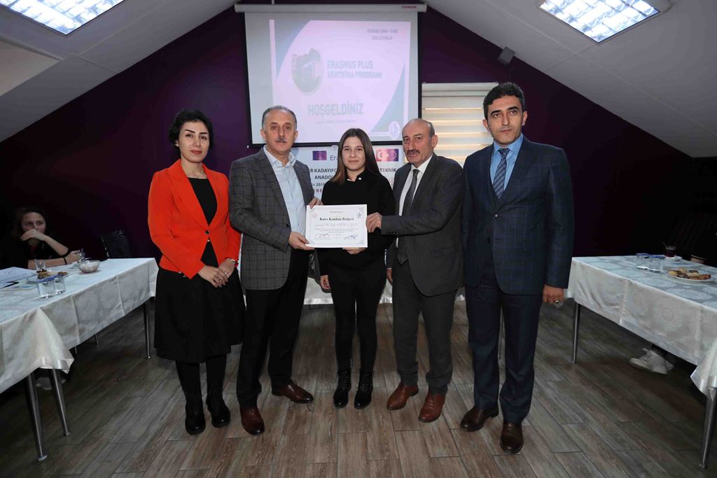 Konuşmanın ardından Başkan Çağırıcı ile İlçe Milli Eğitim Müdürü Mustafa Yılmaz, başarılı öğrencilere sertifikalarını takdim etti.Proje kapsamında Nisan ayında Almanya’nın Berlin şehrine gidecek olan gençler, ikişer grup halinde 14 gün uygulama eğitimi alacak. Öğrenciler 3 farklı anaokulunda ve yine bir otelde yiyecek ve içecek konusunda staj yapacak.