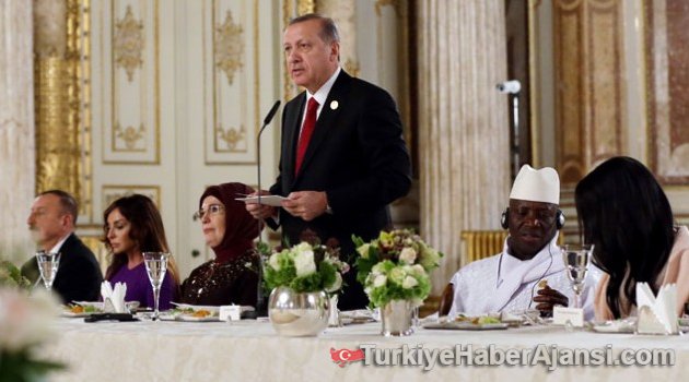 Cumhurbaşkanı Recep Tayyip Erdoğan, İslam İşbirliği Teşkilatı (İİT) 13. Zirvesi'ne katılan konuk heyet başkanları onuruna akşam yemeği verdi. Dolmabahçe Sarayı Muayede Salonu'nda düzenlenen yemeğe gelen davetliler, Dışişleri Bakanı Mevlüt Çavuşoğlu tarafından mehter takımı eşliğinde karşılandı.52 ÜLKEDEN TEMSİLCİLER KATILDIBasına kapalı olarak, yaklaşık 2 saat süren yemeğe, aralarında Azerbaycan Cumhurbaşkanı İlham Aliyev, Katar Emiri Temim Bin Hamad Al Sani ve Endonezya Cumhurbaşkanı Yardımcısı Muhammed Yusuf Kalla'nın da bulunduğu 52 ülkeden temsilciler katıldı.Yemekte, Cumhurbaşkanı Erdoğan'a, eşi Emine Erdoğan da eşlik etti."İNŞALLAH BU ZİRVE YENİ BİR DÖNEMİN BAŞLAMASINA VESİLE OLUR"Erdoğan, yemekte yaptığı konuşmada, "Bu zirveden en büyük beklentimiz, tüm dünyadaki Müslümanlara İslam ülkelerinin birlik ve beraberlik içinde oldukları mesajını verebilmektir. Hedefimiz, tüm İslam aleminin geleceğe umutla bakabilmesini sağlamaktır. İnşallah bu zirve hepimiz için yeni bir dönemin başlamasına vesile olur. Bu zirveyle birlikte, akan kanı ve gözyaşını bir nebze de olsa azaltabilme niyetindeyiz" dedi."HEPİNİZ HOŞGELDİNİZ"Erdoğan şöyle konuştu:"Çok değerli misafirler, aziz kardeşlerim, sizleri sevgiyle, saygıyla selamlıyorum. 13. İslam Zirvesi vesilesiyle siz değerli dost ve kardeşlerimi ülkemizde misafir etmekten büyük bir memnuniyet duyuyorum. Sizlerin onuruna, İstanbul'un bu muhteşem, tarihi mekanında evsahipliği yaptığım resmi akşam yemeğine hoş geldiniz.Adalet ve barış için, birlik ve dayanışma temasıyla düzenlediğimiz zirvede, alacağımız kararların İslam alemine hayırlı olmasını diliyorum. Kararları vermek kadar, onları layıkıyla uygulamak da önemlidir. Bu zirveden en büyük beklentimiz, tüm dünyadaki Müslümanlara İslam ülkelerinin birlik ve beraberlik içinde oldukları mesajını verebilmektir. Hedefimiz, tüm İslam aleminin geleceğe umutla bakabilmesini sağlamaktır. İnşallah bu zirve hepimiz için yeni bir dönemin başlamasına vesile olur. Bu zirveyle birlikte, akan kanı ve gözyaşını bir nebze de olsa azaltabilme niyetindeyiz.""ZOR VE SANCILI BİR DÖNEMDEN GEÇİYORUZ""İslam ülkeleri arasında daha iyi bir diyalog ortamının oluşmasına hizmet edebilme gayesiyle yola çıktık. Farklıklarımızı değil, ortak paydalarımızı ön plana çıkarabilmemiz gerekiyor. İslam ülkelerinin küresel refahtan layık oldukları payı alabilmeleri için gerekli adımları atabilmeleri azmiyle bir arada bulunuyoruz. Önümüzdeki sorunlar büyüktür. Çok ciddi meselelerle mücadele ediyor, zor ve sancılı bir dönemden geçiyoruz. Ancak hiçbir zaman ümidimizi kaybedemeyiz. Biz Müslümanların anlayışında, yeisin, karamsarlığın asla yeri olamaz. Her imtihan iyi değerlendirildiğinde, aynı zamanda bir imkandır, bir fırsattır. BM'den sonra en büyük uluslararası örgüt olan İslam İşbirliği Teşkilatı üyesi ülkeler olarak, göstereceğimiz dayanışma bizleri bugünden çok daha iyi noktalara taşıyacaktır. Bunun için yapmamız gereken şey, her alanda çok çalışmak, dayanışmayı artırmak, kardeşliğimizi perçinlemektir. Ayrıca, bilime, teknolojiye, iyi eğitime, yani geleceğe, gelecek nesilleri yatırım yapmaktır. Adaleti ve barışı hem içeride, hem dışarıda hakim kılmaktır. Hepimiz kendimiz ve vatandaşlarımız için daha huzurlu, daha mutlu, daha adil bir dünya arzu ediyoruz. Ben bu zirvenin daha müreffeh, daha huzurlu, barış ve dayanışma içindeki İslam alemine katkı sağlamasını arzu ediyorum. dönem Başkanlığımız süresince de bu uğurda gece gündüz çalışacağız."