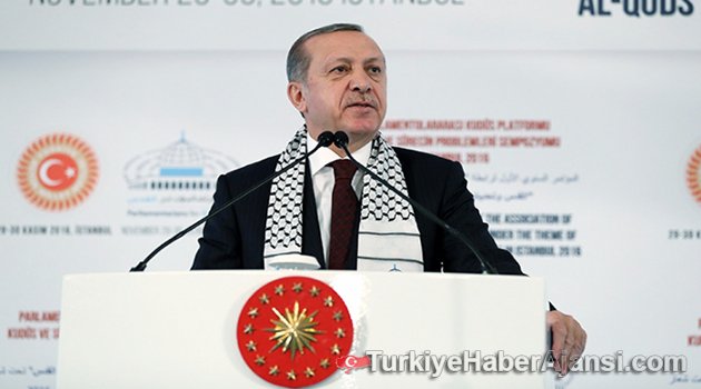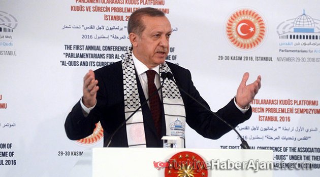 Cumhurbaşkanı Recep Tayyip Erdoğan WOW Otel'de düzenlenen Parlamentolar arası Kudüs Platformu: Kudüs ve Sürecin Problemleri Sempozyumu'na katıldı. Toplantıda konuşan Cumhurbaşkanı Erdoğan Birleşmiş Milletler'i eleştirerek, “1 milyar 700 milyon Müslümanın dünyada acaba 193 devletin olduğu BM'de temsil edildiğine inanıyor musunuz? Bu çok önemli. Hayır. Onun için her uluslararası toplantıda ‘Dünya 5'ten büyüktür' derken bir şey kastediyorum. BM Güvenlik Konseyi'nde 5 devlet var. Diğer 15 geçici üyenin orada hiçbir kıymeti harbiyesi yoktur. Dünyanın kaderi bu 5 devletin elinde, iki dudağının arasındadır. Peki 1 milyar 700 milyonluk İslam dünyasının BM'de bunu zorlayacak bir adım attığını hiç duydunuz mu? Böyle bir gayret var mı? Ne yazık ki yok. Hepsi ürkeklik korkaklık içinde 'acaba böyle bir şey yaparsak ne olur' endişesini taşıyorlar. Dünyada birçok yer demokrasi diyor. Demokratik hakkımız neyse bunu mücadelesini vermemiz lazım. 2. Dünya savaşı şartları içinde oluşturulmuş bir BM ve Güvenlik Konseyi var. Artık bugün şartlar değişti. BM Güvenlik Konseyi'nde daimi geçici ayrımı olmayacak. 20 üye olacak, bu dönerli olacak. 2 yılda bir bu değişecek. Bu 20'nin onu iki yılda bir değişebilir. Hafıza sağlam kalsın diye. Sürekli bu değişiklik yapılarak hem kıtaların orada temsili sağlanmalıdır, hem dünyadaki tüm inanç gruplarının temsili sağlanmalıdır. Dolayısıyla ‘biz BM Güvenlik Konseyi'nde yokuz' kimse dememeli. Eğer BM adalet tesisi edecekse, bu böyle olur. Ama şu andaki haliyle ben BM'den adalet beklemiyorum, oradan da böyle bir adalet çıkmaz bunu bilin” diye konuştu.“GELİN EL ELE VERELİM AMA DİK DURALIM. ATMAMIZ GEREKEN ADIMLARI ATALIM”BM'nin Suriye'de ve Irak'ta gerekli adımları atamadığını vurgulayan Erdoğan, “Suriye meselesinde BM Güvenlik Konseyi bir adım atabiliyor mu? BM'den Suriye'de Irak'ta bir şey görebildiniz mi? Şu anda bana göre Suriye'de 1 milyona yakın insan öldü. Bu ölüm hala devam ediyor. Çocuk kadın erkek ayırım yapmaksızın devam ediyor. Nerede BM. Ne yapıyor. Irak'ta var mı yine yok. Biz sabır sabır dedik, sonunda dayanamadık Suriye'ye Özgür Suriye Ordusu ile görmek zorunda kaldık. Niçin girdik bizim Suriye'nin topraklarında gözümüz yok. Mesele toprağın gerçek sahipleri, topraklarına sahip olsunlar bunu sağlamak. Orada adaletin tesisi için varız. Devlet terörü estiren zalim Esed'in hükümranlığına son vermek için oraya girdik. Kimse de Irki milliyetçilik yapmasın. Irkçılığın bir kenara koyalım, bizim dinimiz İslam. Eğer İslam'ın dışında başka belirleyici bir akım arıyorsak, Allah muhafaza çok kötü bir yere gideriz. Şu anda Irak'ta ne oluyor mezhep çatışması, Suriye'de ne oluyor mezhep çatışması. Şu anda İslam İşbirliği Teşkilatı dönem başkanı olarak söylüyorum gelin el ele verelim ama dik duralım. Hissi davranmayalım. Atmamız gereken adımları da atalım. Bir yerlerden çekinmeyelim. Bizim için hüküm bellidir. ‘ Üzülme, Allah bizimle beraberdir'. Eğer biz buna bakmaz da hala korkaklığa devam edersek bizi daha çok ezerler” şeklinde konuştu.“FETÖ ELHAMDÜLİLLAH BU ÜLKEDE HEDEFİNE ULAŞAMADI, ULAŞAMAYACAK”Türkiye'de 15 Temmuz gecesi yaşanan darbe girişimine de değinen Erdoğan, “15 Temmuz'da milletim F 16'ların, tankların, topların, modern silahların insanoğluna işlemediğini gösterdi. Niye onlar hep şehadete yürüdüler. 248 şehit verdik. O FETÖ denilen terör örgütü Elhamdülillah bu ülkede hedefine ulaşamadı, ulaşamayacak” ifadelerini kullandı.“NE HOCASI, BU BİR ŞARLATAN”Yabancı konuklara FETÖ konusunda uyarılarda da bulunan Erdoğan, “Benim birçok Müslüman kardeşlerimi kendi ülkelerinde bu FETÖ terör örgütüne zemin hazırlıyorlar. Bu da benim serzenişim. Birçok ulemadan insanlar buna zemin hazırlıyorlar. İsminin yanında hoca var. Ne hocası bu bir şarlatan hoca falan değil. Bu kadar insanın ölümüne neden olan ve çok daha enteresan diyorlar ki ‘o bize şah damarından daha yakındır'. Bunun mensupları diyor. Tweet atanın da önünde profesör yazıyor. Profesör olsan ne olur. Bize şah damarından daha yakın olan sadece Allah'tır başka yok. Ama ne yazık ki bunlar işi ta buralara kadar getirdiler. Temenni ediyorum İslam dünyasındaki kardeşlerimi bu yanışı düzeltilmesinde bize yardımcı olur” dedi.“BEN FİLİSTİN MESELESİNİN BM GÜVENLİK KONSEYİ İÇİN BİR TURNASOL KAĞIDI İŞLEVİ GÖRDÜĞÜNE İNANIYORUM”BM Güvenlik Konseyi’nin Filistin’e ilişkin aldığı kararlara değinen Erdoğan, şunları söyledi: “Bölgede yaşanan pek çok gerilimin temelinde Filistin meselesinin buradaki hak gaspının yaşandığı aşikârdır alınan BM kararları, maalesef bu haksız durumu gidermeye yetmedi. Çünkü hukukun üstünlüğü yerine üstünlerin hukukunun geçerli olduğu mevcut küresel sistemde bu kararların hiçbiri uygulanamıyor. Ben Filistin meselesinin BM Güvenlik Konseyi için bir turnasol kağıdı işlevi gördüğüne inanıyorum. Filistin gibi hayati bir konuda yıllardır aldığı kararları hayata geçirmekten aciz bir kurumun günümüz meselelerine çözüm bulma ihtimali yoktur. Bunu beklemeyiniz. Bu durum, Müslümanlar nezdinde uluslararası sisteme ve kuruluşlara karşı büyük bir güven kaybı oluşturdu. Bu güven sorunu, DEAŞ gibi sapkın akımlara istismar zemini sunuyor. Ortadoğu’nun kalbindeki bu yara tedavi edilmeden bölgenin huzur ve sükûna kavuşması düşünülemez. Gerek İsrail yönetimi gerekse uluslararası kamuoyu işgali durduracak adımlar atmak yerine gerilimi tırmandıracak politikalara yöneliyor. Bizim beklentimiz, bırakın Filistinlilere baskı yapılmasını tarihi olarak kendilerine ait toprakların iadesi için gereken adımların derhal atılmasıd