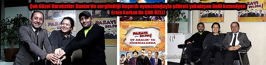 Çok Güzel Hareketler Bunlar’da sergilediği başarılı oyunculuğuyla şöhreti yakalayan ünlü komedyen Ersin Korkut ile 29 Aralık’ta vizyona girecek olan Parayı Bulduk filminden, 16 Aralık’ta Kanal D ekranlarında yayınlanmaya başlayan Dostlar Mahallesi Dizisine ve özel yaşamına kadar her şeyi uzun uzun konuştuk.Ersin Korkut; İzleyicilerimizle yeni yıla gülerek, eğlenerek gireceğiz. “Parayı Bulduk filmimiz izleyenlere şans, mutluluk, başarı ve zenginlik getirsin” temennimizle gösterime çıkıyoruz. İnşallah geçmiş yılların tüm olumsuzluklarını silsin. 2018 yeni umutlar yeni ufuklar getirsin” dileklerinde bulunduktan sonra muhabirimizin sorularını yanıtlıyor ve özel Röportajımıza başlıyoruz.Sinema filminiz “Parayı Bulduk” 29 Aralık’ta, “Dostlar Mahallesi” isimli Diziniz ise 16 Aralık’ta başlıyor. Yeni yıla hem sinema filmi, hem de Dizi ile giriş yapıyorsunuz. Bu konuda duygularınızı alabilir miyiz?Ersin Korkut: Evet… İkisinin de aynı zamana ve Yılbaşına denk gelmesi benim için de çok güzel bir tesadüf oldu. İki projede izleyicinin keyifle izleyeceği projeler… Biz çekimde çok keyif aldık, umarım izleyiciler de izlerken keyif alırlar.Filmde BKM oyuncularından Gülsüm Alkan ve Metin Keçeci’de yer alıyor. Ekibe nasıl dahil oldunuz. “Parayı Bulduk” maceranız nasıl başladı?Ersin Korkut: Daha önce “Çok Güzel Hareketler Bunlar” projesinde birlikte çalıştığımız Metin Keçeci’nin vasıtasıyla teklif geldi bana. Kendi aramızda konuştuğumuzda Gülsüm Alkan’ın da projede olduğunu duyduktan sonra daha senaryoyu bile okumadan, gözü kapalı teklifi kabul ettim ve ekibe dahil oldum. Çekimlerdeki sıcak ortamı ve yönetmenimiz İhsan Taş’ın samimiyetini gördükten sonra iyi ki de teklifi kabul etmişim dedim. İhsan’ın enerjisi çok yüksek, tüm ekibiyle yakından ilgilenen ve çok ta cana yakın biri… Sette başlayan Dostluğumuz set dışında da devam ediyor. Yeni projelerde de birlikte çalışacağımızı umuyorum.Filmi nerede çektiniz?Ersin Korkut: Filmi İstanbul’un değişik semtlerinde çektik.Çekimler kaç gün sürdü?Ersin Korkut: Çekimler 8 gün sürdü…8 gün, bir sinema filmi için çok kısa bir süre değil mi?Ersin Korkut: Tabi ki öyle… Günümüzde bir klip bile nerdeyse bir hafta da zor çekiliyorken, ekip arkadaşlarımız o kadar hızlı ve profesyonellerdi ki 8 günde resmen bir mucizeye imza attık diyebiliriz… Hepsinin emeğine, yüreğine sağlık diyorum.Parayı Bulduk filminde seyirci nasıl bir komedi filmi izleyecek?Ersin Korkut: Biraz eğlenceli, biraz da Draması olan bir iş oldu. Benim için güzel bir deneyim oldu…Filmdeki rolünüzden biraz bahseder misiniz?Ersin Korkut: Daha önce hep komedi oynuyordum. Burada biraz daha farklı bir karakteri oynuyorum. Bir Komiseri canlandırıyorum ve filmin sonunda izleyiciyi ters köşe eden bir karakter.Bugüne kadar sizi hep komedi de gören hayranlarınız, yeni rolünüzü nasıl karşılayacaklar acaba? Tepki gösterirler mi sizce?Ersin Korkut: Oyuncu dediğin değişik roller oynayarak kendini geliştirmeli. Ancak o zaman ben gerçek bir oyuncuyum diyebilir… Bende komedinin dışında da roller oynayabileceğimi ispatlamak istedim ve çok ta güzel oldu bence… Ben büyük bir keyifle oynadım, umarım izleyiciler de beğenir.Bu filmden sonrası için ne düşünüyorsunuz, var mı yeni film projeleriniz?Ersin Korkut: Filmimiz kısmet olursa 29 Aralık’ta vizyona giriyor. Dizimizde 16 Aralık’ta yayına giriyor. Şu an, yeni proje konuşmak için çok erken.Geldiğimiz noktada Türk sineması hakkında ne düşüyorsunuz?Ersin Korkut: Türk sineması her geçen gün daha da güçleniyor diye düşünüyorum. Bu mesleğe gönül vermiş, çok yetenekli kardeşlerimiz var. Kendi imkanları dahilinde güzel işler çıkarıyorlar. Şartlar ve imkânlar biraz daha sağlanırsa ülkemizi yurt dışında da gururla temsil ederler diye düşünüyorum.Filmin fragmanında kullanılan efektler çok dikkat çekici. Kullanılan efektler ve animasyonlar filme bir artı sağladı mı sizce?Ersin Korkut: Tabi ki…. Ben filmi izlerken o efektli sahnelerde çok güldüm. Filmin Görsel efektlerini yapan arkadaşımızı yönetmenimiz İhsan Taş buldu. İkisi birlikte uzun süre filmin üzerinde çalışma yaptıktan sonra filmi bize izlettiler… İkisinin de emeğine sağlık…Bugüne kadar keyifle yer aldığınız projeler hangileri?Ersin Korkut: Çok Güzel Hareketler Bunlar benim ilk göz ağrım ve özelim, Kutsal Damacana, Organize işler, Neşeli Hayat, Kolonya Cumhuriyeti ve tabi ki son filmimiz Parayı Bulduk…Daha önce Yılmaz Erdoğan, Cem Yılmaz ve Şafak Sezer gibi başarılı oyuncularla aynı projelerde yer aldınız. Onlarla yer aldığınız projeler size bir artısı oldu mu?Ersin Korkut: Olmaz mı? Hem oynayarak çok keyif aldığım, hemde olumlu geri dönüşler aldığım işlerdi… İyi ki yer almışım diyorum…Sizi pek magazinlerde göremiyoruz. Neden acaba?Ersin Korkut: Aslında pek bir nedeni yok. Muğla’da yaşıyordum uzun zamandır. Şu an Dizi çekimleri için yeniden İstanbul’a yerleştim. Birde özel hayatımı göz önünde yaşamayı sevmiyorum. Gözlerden uzak yaşamayı tercih ediyorum. Son olarak 29 Aralık’ta vizyona girecek “Yılın son komedi filmi” Parayı Bulduk ile ilgili sinemaseverlere ne söylemek istersiniz?Ersin Korkut: Kesinlikle hem oynamaktan büyük keyif aldığım, hem de sonuna kadar arkasında durduğum bir iş oldu. Sinemaseverlerin de, böylesine emek harcanan bir filme sahip çıkacağını düşünüyorum.Başarılı oyuncu son olarak, ekibin samimiyeti ve içtenliği filme de yansıdığını belirterek, filmin sinemaseverler tarafından da beğenileceğini söyledi ve 29 Aralık’ta herkesi filmimize bekliyoruz” diyerek sinemaseverleri filmi izlemeye davet etti.