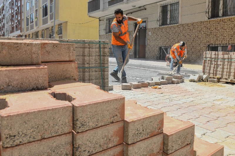Çalışmalarına ara vermeden devam eden ekipler, aynı mahallede bozulan 1475. Sokak’ta yeni parke kaldırım ve yol yapım çalışmalarını sürdürüyor.
