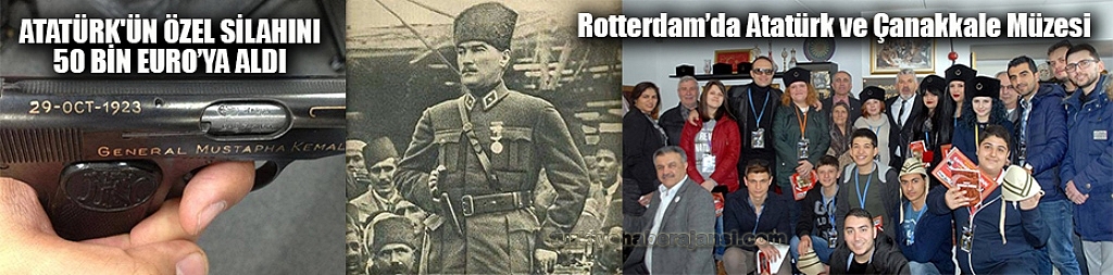 'Çılgın Türk' Bülent Türker'in 25 yıllık birikiminin ürünü Atatürk ve Çanakkale Müzesi... Türkiye’den yurt dışına götürülmüş, kaybolan tarihi değerleri toplayan Bülent Türker, muhteşem bir koleksiyon sahibi.2015 te Çanakkale’nin 100 yılında Rotterdam da kurmuş Atatürk ve Çanakkale Müzesini…Bülent Türker, Atatürk ve Çanakkale Müzesini oluştururken, koleksiyon ürünlerini dünyanın her yerinden satın almış ve toplamış…Türk Bayrakları, Sancak, Kuran-ı Kerim, Altından Atatürk’ün gençliğe hitabesi, kılıç, süngü, Osmanlıca nutuk, tabancalar, mermiler, Atatürk ve Çanakkale Savaşı içerikli gazeteler, dergiler, Çanakkale Savaşında kullanılan ilaç kutuları, sigaralıklar, giyim eşyaları, Atatürk’ün öldüğü günkü tüm gazete ve dergiler de yer alıyor koleksiyonda… 82 yaşındaki Annesi Zehra Türker oğlu Bülent ve Torunu Buğra, Bülent Türker’in en büyük destekçisi…309 m2 2 katlı ve bahçeli evini müze haline getiren Bülent Türker’in en değerli koleksiyon parçası ise Arjantin Cumhurbaşkanı'nın Atatürk'e hediye ettiği tabanca… ATATÜRK'ÜN ÖZEL SİLAHINI 50 BİN EURO’YA ALDIİngiltere'nin başkenti Londra’daki ünlü müzayede salonu Christie’s’de düzenlenen Antik Silahlar Müzayedesi'nde, dönemin Arjantin Cumhurbaşkanı Marcelo Torcuato de Alvear tarafından Atatürk için özel olarak yaptırılan tabanca satışa çıkarıldı.Atatürk'ün tabancası 2012 yılı Eylül ayında müzayedeye giren 81 kişiye sunuldu… Müzayedeye Hollanda'da yaşayan Kırklarelili Bülent Türker de katıldı…15 bin Sterlinden başlayan açık artırmada, üzerinde altın harflerle, “General Mustafa Kemal” yazan Browning marka Atatürk’ün Tabancasını Kırklarelili Bülent Türker evini satarak 20 bin Sterlin’e satın aldı… Vergi ve diğer masraflarla birlikte tabancanın toplam fiyatı 26 bin sterlin yani 50 bin EURO oldu… Bülent Türker, Hollanda’da kuyumcu olan bir iş adamının Atatürk’ün Tabancasına 200 bin Euro verdiğini fakat satmayı kabul etmediğini belirtiyor…Atatürk'ün tabancasını satın almayı milli bir dava olarak kabul ettiğini belirten Bülent Türker, hayalinin Atatürk'ün tabancasını Türkiye'ye getirmek olduğunu belirtiyor…Ücretsiz girilen Hollanda - Rotterdam’daki Atatürk ve Çanakkale Müzesi’nde park sorunu yok, çay kahve de ücretsiz.Atatürk ve Çanakkale Müzesini gezmek için Türkiye’den ve dünyanın tüm ülkelerinden ziyaretçiler geliyor…
