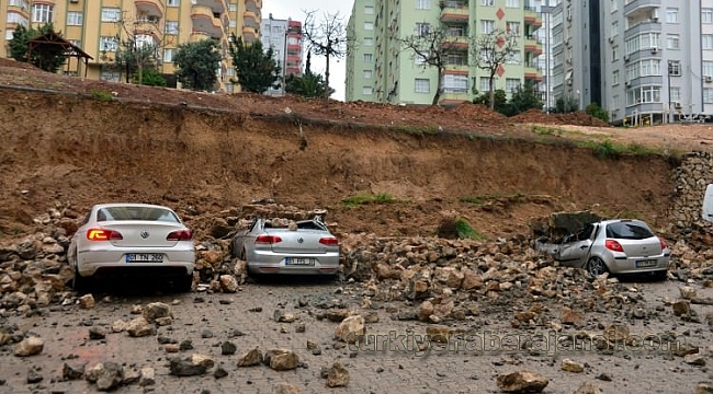Adana'da, yoğun yağışın etkisiyle bir sitenin istinat duvarının çökmesi sonucu park halindeki kapalı kasa bir kamyonet ile 3 otomobilde hasar oluştu.