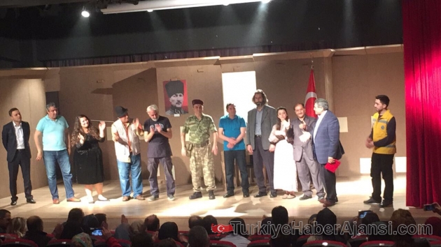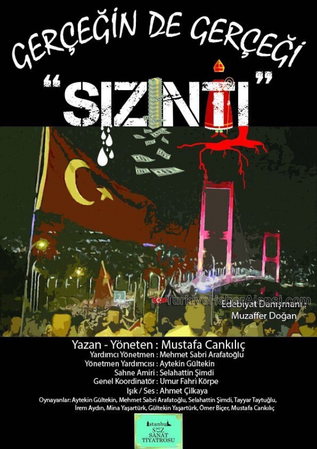 Fetullahçı Terör Örgütü (FETÖ) gerçeği tiyatro oyunu ile anlatılıyor... FETÖ’nün ülkedeki yayılımı, yurt dışındaki durumu ve 15 Temmuz'da kalkıştığı darbe girişimi sırasında yaşananlar ‘Gerçeğin de Gerçeği – SIZINTI’ adlı oyunla tiyatro perdesine aktarıldı.İstanbul SÖZ Sanat Tiyatrosu tarafından, Eyüp Belediyesi Nikah Salonu Kültür ve Sanat Merkezi'ndeki Hayali Sait Tiyatro Salonu'nda sahnelenen tiyatro gösterisinde Fetullahçı Terör Örgütü mensuplarının 15 Temmuz'da kalkıştığı darbe girişimi sırasında yaşananlar canlandırıldı.Senaryosu Mustafa Cankılıç tarafından yazılan ve yönetmenliğini de Mustafa Cankılıç’ın yaptığı ‘Gerçeğin de Gerçeği – SIZINTI’ adlı oyunla, FETÖ’nün sinsi planları, örgütlenmesi anlatılıyor…Duygusal sahnelerin yer aldığı oyunda, 15 Temmuz darbe girişimi sırasında yaşanan olaylar, tek vücut olan halkın gösterdiği direnç, Şehit Ömer Halisdemir'in girişimi önlemek için ölüme yürümesi gibi olaylar perdeye aktarılıyor.Türk milletinin 15 Temmuz'da gösterdiği kahramanlığı anlatmak için sahnelenen oyunu izleyen davetliler, bazı sahnelerde gözyaşlarına hakim olamadı.‘Gerçeğin de Gerçeği – SIZINTI’ adlı oyun, destekleyen belediyelerin Kültür ve Sanat Merkezi'nde sahnelenmeye devam ediliyor…‘Gerçeğin de Gerçeği – SIZINTI’Yazan Yöneten: Mustafa Cankılıç