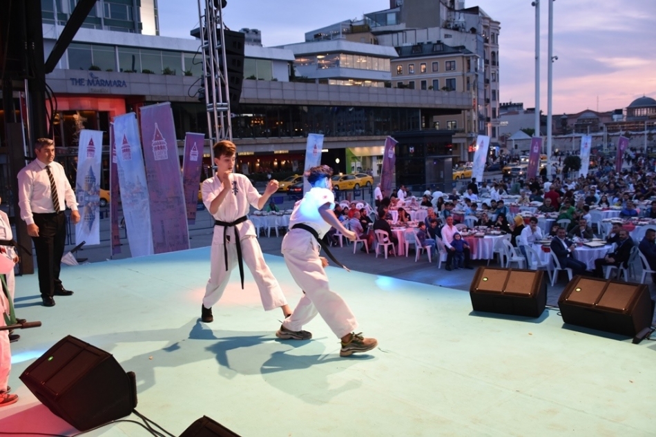 Savunma ve ring sporları federasyonları, İstanbul Taksim Meydanı Beyoğlu belediyesi platformunda iftar programı düzenledi. Savunma ve Ring Sporları Federasyonları başkan, temsilci, sporcu ve ailelerinin katılımıyla gerçekleşen iftar programında sporcular mini bir gösteri yaptı. Sporcu çocukların performansları izleyenleri şaşkına çevirdi.