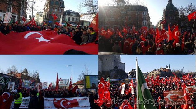 Fransalı Türklerin teröre tepkisi dinmiyor. Son olarak doğu Fransalı binlerce Türk, teröre lanet etmek için sokağa indi. Fransa’da yaşayan Türklerin teröre karşı gerçekleştirdiği geniş katılımlı gösteriye 2 binden fazla kişinin katıldığı belirtildi.Fransa’da yaşayan Türklerin teröre tepkisi devam ediyor. Fransa’nın doğusundaki Montbéliard ve çevresindeki Türk dernekleri, ‘teröre lanet, kardeşliğe davet’ yürüyüşü düzenledi.Son dönemde Türkiye başta olmak üzere dünyadaki terör eylemlerini kınamak için Fransalı Türklerin gerçekleştirdiği en geniş katılımlı yürüyüşe yoğun ilgi gösterildi. Organizatörler, yürüyüşe katılım sayısının 2 bin 500 kişi civarında olduğunu duyurdu.Montbéliard, Place de la Gare’da, saat 14’te başlayan gösteriye katılanlar ellerinde Fransızca ve Türkçe, ‘Terörün dini dili ırkı yoktur’, ‘Teröre karşı hep birlikteyiz’, Bu vatan bölünmeyecek” pankartları taşıdı. Göstericiler, ‘Barışa evet teröre hayır!’, ‘Şehitler ölmez vatan bölünmez’ sloganları attı.Büyük coşkuyla geçen yürüyüş sırasında göstericiler, güvenliği sağlamak için olay yerinde bulunan polis ekiplerine de gül verdi.Fransa’da daha önce de Paris, Strasbourg, La Rochelle, Saint-Claude ve Sarreguemines te yaşayan Türkler terörü protestosu için gösteri düzenlemişti.