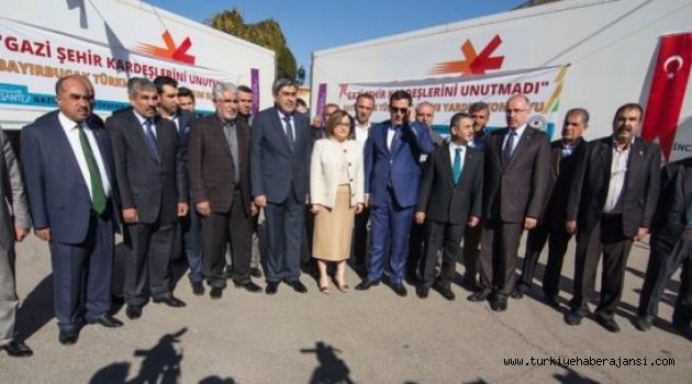 Gaziantep Büyükşehir Belediyesi ve Gaziantep Ticaret Borsası (GTB) işbirliğiyle Suriye'deki Türkmen köylerine ulaştırılmak üzere 14 tır dolusu yardım malzemesi gönderildi.İstasyon Meydanı'nda düzenlenen törende konuşan Gaziantep Büyükşehir Belediye Başkanı Fatma Şahin, yardımları 2 saatte topladıklarını belirterek, çok duygulandığını söyledi.ŞAHİN'DEN DUYGU YÜKLÜ KONUŞMABağışta bulunan hayırseverlere teşekkür eden Şahin, "Onlar bizim akrabalarımız, canlarımız, her şeyimiz. İstiyorlar ki Bayırbucak Türkmenleri bu mücadeleden vazgeçsin, büyük oyun sahneye konulsun ve gerçekleşsin. Bayırbucak Türkmenleri, büyük bir mücadele içinde. Bizler de onların yanında olduğumuzu bugün bu tırlarla gösterdik. Bu mücadele bizim mücadelemiz. İnşallah kardeşlerimiz bu mücadeleden zaferle ayrılacaklar" diye konuştu.Türk halkının, oynanan oyunu 1 Kasım'da bozduğunu belirten Şahin, Bayırbucak Türkmenlerinin verdikleri mücadeleyle o bölgedeki oyunu da bozacağına inandığını ifade etti.Dünyaya insanlık dersi veren Gaziantep'in Nobel Ödülü alacak bir şehir olduğuna dikkati çeken Şahin, şöyle konuştu:"Gaziantep olarak çok mutluyuz, huzurluyuz. 'Bölgeye barış gelsin' diye mücadele veriyoruz. Barış gelene kadar nerede mağdur, mazlum, yardıma muhtaç varsa onların yanındayız çünkü biz böyle bir medeniyetten geliyoruz. Biz karanlıkla mücadeleyi aydınlığı çoğaltarak, savaşla mücadeleyi barışı artırarak yapacağız. Yüreğimizde herkese yer var. Nasıl geçmişte Kobanili, Suriyeli kardeşlerimize elimizi açtıysak, desteğimizi verdiysek, bir gecede 200 bin kardeşimizi içeriye alıp ağırladıysak, bugün Bayırbucak Türkmenlerine de aynı şekilde davranıyoruz.Bizde ayrımcılık yok. Bir ve beraber olmak için, bütünleştirmek için bu yolculuktayız. Bu yolculukta bir insanlık sınavındayız. Allah'ın izniyle de bu sınavı kazanacağız.""Kardeşlerimizi bu zor günlerinde yalnız bırakmayacağız"GTB Başkanı Ahmet Tiryakioğlu da olaylar başladığı andan itibaren kendilerini Bayırbucak Türkmenlerinin yerine koyduklarını ve ona göre hareket ettiklerini anlattı.İlk etapta 14 tır yardım malzemesi topladıklarını dile getiren Tiryakioğlu, "İnşallah yardımlarımıza bundan sonra da devam edeceğiz. Kardeşlerimizi bu zor günlerinde yalnız bırakmayacağız, yanlarında olacağız" ifadesini kullandı.Konuşmaların ardından yardım malzemesi yüklü tırlar, Bayırbucak Türkmenlerine ulaştırılmak üzere yola çıktı.Törene AK Parti Gaziantep İl Başkanı Eyüp Özkeçeci, GTB Meclis Başkanı Selami Memiş ve bazı yönetim kurulu üyeleriyle belediye yetkilileri katıldı.