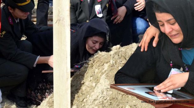 Tunceli'de PKK'lı teröristlerin askeri araca düzenlediği mayınlı saldırı sonucu şehit olan 2 askerden 26 yaşındaki Jandarma Astsubay Kıdemli Çavuş Mehmet Şimşek, memleketi Afyonkarahisar'ın Çay İlçesi'nde toprağa verildi. Şehidin mezarına kapanan eşi Şeyda Şimşek, "Mehmet'im burada üşür" diye ağladı.ASKERİ UÇAKLA GETİRİLDİTunceli- Pülümür karayolunda dün yol kontrolü yapan askerlerin geçişi sırasında PKK'lı teröristlerce önceden yola döşenen el yapımı patlayıcının patlatılması sonucu 2 asker şehit oldu. Şehitlerden Jandarma Astsubay Kıdemli Çavuş Mehmet Şimşek'in cenazesi askeri uçakla Kayseri'den Afyonkarahisar'a getirildi.AMBULANSIN GELMESİYLE FERYATLAR YÜKSELDİAfyonkarahisar Askeri Havalimanı'nda karşılanan şehit Mehmet Şimşek'in cenazesi Çay'a bağlı Çayırpınar Köyü'ndeki baba evine getirildi. Şehidin cenazesini taşıyan ambulansın gelmesiyle evden feryatlar yükseldi. Yakınlarının tek tek ambulansa binerek şehidi son kez gördüğü helallik sırasında eşi Şeyda Şimşek'in çığlıkları ambulansın dışına taştı. Anne Adile Şimşek, eşi Şeyda Şimşek ile şehidin yakınlarının fenalık geçirdiği evin önünde helallik alınarak dua edildi.BİNİ AŞKIN KİŞİ KATILDIDaha sonra şehit Astsubay Mehmet Şimşek için Çayırpınar köy mezarlığı önünde askeri tören düzenlendi. Cenaze törenine Orman ve Su İşleri Bakanı Veysel Eroğlu, Afyonkarahisar Valisi Hakan Yusuf Güner, İkmal ve Garnizon Komutanı Tuğgeneral Gökhan İsmet Gülmez, Afyonkarahisar milletvekilleri Ali Özkaya, Burcu Köksal ve Mehmet Parsak, Afyonkarahisar Belediye Başkanı Ak Partili Burhanettin Çoban, İl Genel Meclisi Başkanı Salih, protokol üyeleriyle 1000'i aşkın kişi katıldı."BOYNUNU BÜKTÜN GİTTİN BİLDİM Mİ KARIM MI KALIYOR?"Şehit Şimşek'in naaşı helallik alınmak için baba evine getirilirken, burada ailesi ve yakılan tarafından yakılan ağıtlar yürekleri dağladı. Şehidin ablasının söylediği, "Seni biz böyle mi indirecektik Mehmet'im, aman Mehmet'im, canım Mehmet'im. Boynunu büktün gittin bildim mi karım mı kalıyor, anam mı kalıyor dedin? Biricik kardeşim, kardeşim" sözleri herkesi gözyaşlarına boğdu. Şehidin annesi Adile Şimşek ve henüz bir aylık eşi Şeyda Şimşek cenazede sinir krizleri geçirdiler. Anne ve gelin cenaze töreni boyunca kadın askerlerin kollarında güçlükle ayakta dururken, fenalık geçiren anne ve geline 112 Acil Servis ekipleri müdahale etti. Eşinin tabutunun ardından yürüyen Şeyda Şimşek yolda düşüp bayılırken, ilk müdahaleyi yine sağlık ekipleri ve kadın askerler yaptı."KALK, SON BİR KERE SARILAYIM"Şehidin özgeçmişinin okunmasının ardından bir kez daha helallik istendi. İl Müftüsü Şükrü Kabukçu'nun kıldırdığı namazın ardından şehidin cenazesi köy mezarlığında defnedildi. Cenaze sonrası Kuran okunmasını da bekleyen Orman ve Su İşleri Bakanı Veysel Eroğlu, şehidin tabutunun üzerindeki bayrağı öperek eşi Şeyda Şimşek'e teslim etti. Eşinin fotoğrafını okşayan Şeyda Şimşek, "Mehmet'imin yüzü çok güzeldi ama parçalamışlar yüzünü" diye ağladı. Kuran okunması sonrası, "Kalk son bir kere sarılayım" diye feryat eden Şeyda Şimşek, eşinin mezarına kapanarak uzun süre gözyaşı döktü. "Mehmet'im burada üşür" diye ağıt yakan acılı eşi, iki kadın asker güçlükle sakinleştirirken, hala Fadime Saldoğan ise şehidin mezarındaki taşları tek tek öptü. Cenaze sonrası baba Osman Şimşek evde taziyeleri kabul etti. Şehit Jandarma Astsubay Kıdemli Çavuş Mehmet Şimşek'in Çayırpınar Köyü'nün ilk şehidi olduğu belirtildi.