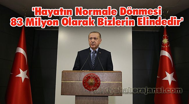 Cumhurbaşkanı Erdoğan, koronavirüs ile mücadeleye ilişkin alınan yeni tedbirleri açıkladığı konuşmasında, “Ülkemizde hayatı ne zaman normale döndürebileceğimiz 83 milyon olarak bizlerin elindedir. Kurallara ne kadar iyi riayet edersek salgının seyrini o derece hızlı kontrol altına alır ve tehdidi tamamen ortadan kaldırabiliriz, aksi hâlde bugün üzüntüyle takip ettiğimiz kimi ülkelerin durumuna düşmemiz kaçınılmazdır” dedi.Cumhurbaşkanı Recep Tayyip Erdoğan, Koronavirüs ile mücadeleye dair Bilim Kurulu’nun tavsiyeleri doğrultusunda alınan yeni tedbirleri, Huber Köşkü’nden ulusa seslenerek, kamuoyuna açıkladı.Cumhurbaşkanı Erdoğan, şunları söyledi:“TÜRKİYE SALGINLA MÜCADELESİNİ KARARLILIKLA SÜRDÜRÜYOR”“Aziz milletim, sizleri en kalbi duygularımla, muhabbetle selamlıyorum.Türkiye Koronavirüs salgınıyla mücadelesini kararlılıkla sürdürüyor. Dünyanın en gelişmiş ülkelerinin dahi çok ciddi bir bocalama yaşadığı bu süreçte biz hem hazırlık, hem malzeme, hem müdahale konusunda gerçekten sağlam bir duruş sergiliyoruz.Türkiye’deki Kovid-19 hastalarının veya bunlara hastalığı bulaştıranların önemli bir bölümünde Avrupa-Amerika seyahati hikâyesinin olması düşündürücüdür. Batı ülkelerinin sağlık sistemlerinin yeteri kadar kapsayıcı olmaması sebebiyle hastalığın teşhisinde ve vaka sayısı arttıktan sonra da tedavisinde yetersiz kaldıkları çok açıktır. Türkiye en başından itibaren elindeki veriler çerçevesinde tüm tedbirleri alarak hastalığın ülkemize girişini geciktirmiştir.Hastalığın ilk defa görülmesinin ardından da ülke genelinde vaka tespiti ve tedavisini oldukça başarılı şekilde yürüttük. Şu an itibariyle dünyada salgından etkilenenlerin tespit edilebilen sayısı 1 milyon 30 bine, Kovid-19 hastalığından ölenlerin sayısı da 55 bine ulaşmıştır. Ülkemiz ise toplamda 20 bin 921 hasta, 425 ölüm, 484 taburcu sayısı ile nüfus ve salgın tehdidi bakımından mukayese edilebileceğimiz ülkelerin tamamından daha iyi bir yerdedir.“TÜRKİYE, KÜRESEL SALGINA VE ONUNLA BAŞLAYAN BÜYÜK KRİZE EN HAZIRLIKLI ÜLKELERDEN BİRİDİR”Maske, test kiti, temizlik malzemeleri başta olmak üzere salgınla mücadele için gereken temel araçları kendimizin üretiyor olması bizi mutlak dışa bağımlılıktan kurtarmıştır. Kapsayıcı genel sağlık sigortamızın, yaygın ve modern hastane ağımızın, yetişmiş ve yeterli sayıda sağlık personelimizin önemi bu süreçte çok daha iyi ortaya çıkmıştır. Aynı şekilde temel gıda maddelerinin neredeyse tamamında kendi kendimize yeterli olmanın ötesinde net ihracatçı konumunda bulunmamız da ülkemize büyük avantaj sağlıyor. Dolayısıyla Türkiye bu küresel salgına ve onunla başlayan büyük krize en hazırlıklı ülkelerden biridir. Tek yapmamız gereken, birliğimize, beraberliğimize, kardeşliğimize sıkı sıkıya sahip çıkarak salgın tehdidi geçene kadar kurallara harfiyen uymaktır.Sağlık Bakanlığımızda oluşturduğumuz Bilim Kurulumuz hastalığın dünyadaki ve ülkemizdeki gelişimini an be an takip ediyor. Buna göre alınması gereken tedbirler de yine Bilim Kurulumuz tarafından belirlenerek tavsiye olarak hükûmetimize iletiliyor. Cumhurbaşkanlığı olarak biz de bakanlık ve kurumlarımızla birlikte dünyadaki ve ülkemizdeki tüm gelişmeleri göz önünde bulundurarak kararlarımızı alıyor ve uygulamaya geçiriyoruz.Hep söylediğim gibi, özellikle milletimizden beklentimiz; her bireyin kendi karantinasını kendi uygulamasıdır. Genel olarak halkımızın kurallara riayet hususunda hassasiyet gösterdiğini biliyor ve herkese şükranlarımı sunuyorum. Ancak sayıca az da olsa sosyal izolasyon, sosyal mesafe, temizlik gibi temel kurallara uymayanların bulunduğunu da görüyoruz. Bunun için gönüllü olarak uygulanması gereken kuralları aşamalı bir şekilde zorunlu hâle dönüştürmemiz gerekebiliyor.Aziz milletim, salgınla mücadele çerçevesinde attığımız adımlara bu gece yarısı itibariyle yenilerini ekliyoruz.“30 BÜYÜK ŞEHİR İLE ZONGULDAK İLİMİZİ BELİRLİ İSTİSNALAR HARİCİNDE ARAÇ GİRİŞ-ÇIKIŞINA KAPATIYORUZ”Bilindiği gibi daha önce şehirlerarası toplu taşımayı izne bağlamıştık. Kendi arabalarıyla şehirlerarası yolculuk yapan vatandaşlarımızı da şehir girişlerinde kontrole tabi tutuyorduk.Bu gece itibariyle ülkemizin 30 büyük şehri ile akciğer rahatsızlıklarının sık görüldüğü Zonguldak ilimizi belirli istisnalar haricinde araç giriş-çıkışına kapatıyoruz.