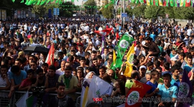 HDP'nin Diyarbakır'da dün düzenlediği mitinge, suç oluşturan poster ve bez parçalarını taşıyan 10 kişi gözaltına alındı.