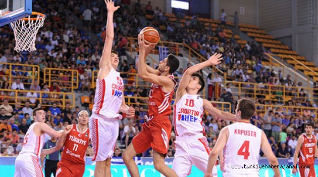 FIBA 19 Yaş Altı Erkekler Dünya Basketbol Şampiyonası'nda mücadele eden Türkiye, yarı finalde Hırvatistan'a 91-56 mağlup oldu. Türkiye, Yunanistan ile yarın (5 Temmuz) TSİ 18:15'te üçüncülük maçına çıkacak.Yunanistan'ın Girit adasında düzenlenen şampiyonada, mücadeleye iyi başlayan Hırvatistan, Arapovic ile pota altından üst üste bulduğu sayılarla Türkiye karşısında ilk 5 dakikayı 11-6 önde geçti. Milliler, kalan dakikalarda rakibi karşısında iyi savunma yapamayınca Hırvatistan karşısında ilk periyodu 22-12 geride kapattı.İkinci çeyreğe Türkiye, 6-0'lık seriyle başlamasına rağmen savunmada yetersiz kaldı. Hızlı hücumlarda Zubac ve Arapovic ile sayılar bulmaya devam eden Hırvatistan, aradaki farkı daha da açarak ilk yarıyı 44-28 önde kapattı.Farkın açılması nedeniyle morali bozulan ve çok fazla top kaybı yapan Türkiye karşısında üçüncü periyotta oyunun kontrolünü tamamen ele alan Hırvatistan, Slavica ile bulduğu sayılarla son çeyreğe 72-45 önde girdi.Son periyotta oyun disiplininden kopan Türkiye karşısında dış atışlarla sayılar bulan Hırvatistan, rahat bir oyununun ardından mücadeleyi 91-56 kazanarak finale yükseldi.HIRVATİSTAN: 91 - TÜRKİYE: 56Salon: Heraklion Arena (Yunanistan)Hakemler: Michael Weland (Kanada), Piotr Pastusiak (Polonya), Roberto Vazquez (Porto Riko)Hırvatistan: Filipovic, Bozic, Slavica, Zubac, Arapovic, Kapusta, Majcunic, Badzim, Vranes, Bender, Zizic, KaracicTürkiye: Berk Uğurlu, Tolga Geçim, Furkan Korkmaz, Ege Arar, Egemen Güven, Yiğit Arslan, Doğuş Özdemiroğlu, Okben Ulubay, Kadir Bayram, Oğulcan Baykan, Ayberk Olmaz, Mehmet Alemdaroğlu1. Periyot: 22-122. Periyot: 44-28 (22-16)3. Periyot: 72-45 (28-17)4. Periyot: 91-56 (19-11)