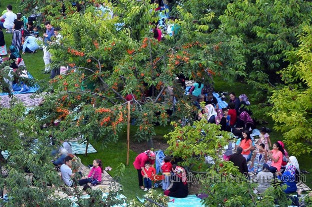 Nostalji Bahçelerinden Kiraz Bahçesi’nde düzenlenen iftar programında 2 bin kişi kiraz ağaçları altında dalından kiraz yiyerek oruç açtı.