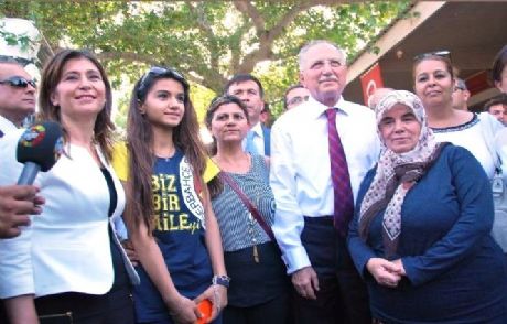Türkiye'nin Cumhurbaşkanı adayı Prof. Dr. Ekmeleddin İhsanoğlu, seçim çalışmaları kapsamında Aydın’ı ziyaret etti ve “Hakkın rızası, halkın izniyle başaracağız” dedi.Saat 12:00 civarında İzmir’e gelen, oradan da kara yoluyla Aydın’a hareket eden İhsanoğlu, Aydın otoban girişinde vatandaşlar tarafından karşılandı.Prof. Dr. Ekmeleddin İhsanoğlu, ilk olarak Aydın Valisi Erol Ayyıldız’ı makamında ziyaret etti. Burada yaptığı açıklamada “Medeniyetin beşiği, Efeler Diyarı Aydın’ın sorunlarını, imkânlarını ve geleceğini görüştük” diyen İhsanoğlu, seçimin milletin hak ettiği huzur, sükun ve güven içinde gerçekleşeceğine inandığını belirtti.Cumhurbaşkanı adayı İhsanoğlu, daha sonra Aydın Büyükşehir Belediye Başkanı Özlem Çerçioğlu’nu ziyaret etti. Çerçioğlu’nu yeniden belediye başkanı seçildiği için kutlayan İhsanoğlu, Kuşadası, Nazilli ve Söke gibi ilçeleriyle Aydın’ın hak ettiği büyükşehir statüsüne kavuşmasından duyduğu mutluluğu ifade etti.Cumhurbaşkanı adayı Ekmelddin İhsanoğlu, merhum Başbakan Adnan Menderes'in baba ocağı olan Çakırbeyli'yi ziyaret etmenin demokrat olan herkese farz olduğunu ve bu farzı yerine getirdiği için mutluluğu olduğunu belirtti.Aydın programı kapsamında Merhum Başbakan Adnan Menderes’in Koçarlı ilçesine bağlı Çakırbeyli köyünü ve köydeki ‘Demokrasi Çınarı’nı ziyaret etti. İhsanoğlu’na ziyaretleri sırasında eşi Füsun İhsanoğlu, TBMM İdare Amiri Ali Uzunırmak, CHP Genel Başkan Yardımcıları Erdoğan Toprak ve Bülent Tezcan, CHP milletvekileri Engin Özkoç Serdar Soydan, Faik Tunay ve Osman Aydın, Aydın Büyükşehir Belediye Başkanı Özlem Çerçioğlu, MHP İl Başkanı Fevzi Köse, CHP İl Başkanı Barkan Kalınomuz eşlik etti.Aydın’ın aşırı sıcağı nedeniyle programına devam ederken bir süre mola veren ve Yenipazar’da Bulunan Yörük Ali Efe’nin kabir ve müze ziyaretini iptal eden Cumhurbaşkanı Adayı Ekmeleddin İhsanoğlu, Çakırbeyli Köyü’ndeki konuşmasına Çakırbeyli’nin önemini anlatarak başladı. İhsanoğlu “Çakırbeyli’ye gelmek ülkemizde demokrasinin beşiğine gelmek demektir. Burada ülkemizde demokrasi kahramanı Demokrasi Şehidi Adnan Menderes’in ailesi destekçileri ve ona inanların olduğu yerde bulunmak demokrasi yolunda olan herkes için bence bir farzdır. Buraya gelmek demokrat olmak isteyen herkese farzdır. Biz bu farzımızı yerine getirmenin mutluluğu içindeyiz” dedi.“CUMHURBAŞKANI ABDULLAH GÜL’ÜN YOLUNDAN GİTTİ”Köylülere hitaben yaptığı konuşmanın ardından halkla selamlaşıp isteyenlerle hatıra fotoğrafı çektiren Cumhurbaşkanı adayı Ekmelddin İhsanoğlu, daha sonra Çakırbeyli Muhtarlığı’nda bulunan Menderes ve Ailesi’nin fotoğraflarından oluşan hatıra fotoğraflarının yer aldığı sergiyi izledi. Köy Muhtarı Mehmet Demir’den fotoğraflarla ilgili bilgi alan İhsanoğlu, daha önce köye gelen Cumhurbaşkanı Abdullah Gül’ün muhtarla çektirdiği hatıra fotoğrafını da asılı görünce kendi fotoğrafının da anı olarak asılması için muhtarla hatıra fotoğrafı çektirdi.“SİYASİ POLEMİĞE GİRMEM”Muhtarlıktaki sergi ziyaretinin çıkışında gazetecilerin MHP Genel Başkanı Devlet Bahçeli’nin HDP adayı Selahattin Demirtaş ile ilgili açıklamasına ilişkin sorulan sorulara “Ben polemiğe girmem” diye cevap veren Ekmeleddin İhsanoğlu, konuşmasında “Türkiye’de demokrasi mücadelesi burada başlamıştır. Türkiye’de siyasette yüksek seviye Çakırbeyli’de başlamıştır. Biz buradan çok ders alabiliriz. Seviyeyi tutturmak beyefendiliği sürdürmek ve tartışmaların adabıyla ilgili olarak o dönemin siyasetçilerinden yani Menderes’ten ders çıkarabiliriz” sözlerine yer verdi.Daha sonra Demokrasi Çınarı’na ziyaret eden Cumhurbaşkanı adayı Ekmeleddin İhsanoğlu, Demokrasi Çınarı önünde hatıra fotoğrafı çektirip, çınarın önündeki manavdan da armut aldı.Çakırbeyli’den oldukça yorgun ayrılan İhsanoğlu, Aydın Sevgi Yolu’ndaki halkla selamlaşma programını da iptal ederek istirahete çekildi.