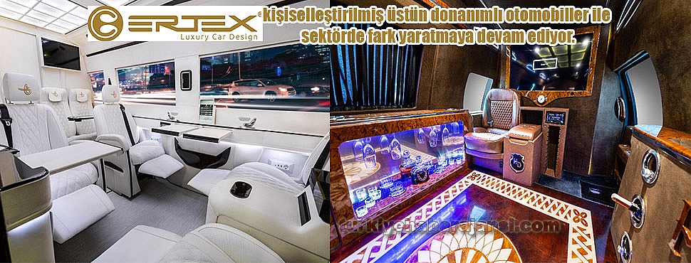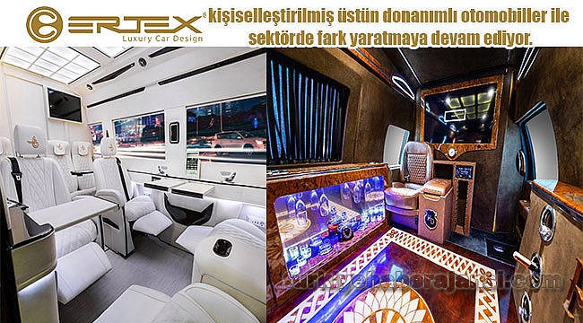 Dünyanın her yerinden iş insanı, siyasetçi ve sanatçıya özel otomobiller tasarlayarak VIP araç sektöründe sınırları zorlayan Ertex, kişiselleştirilmiş üstün donanımlı otomobiller ile sektörde fark yaratmaya devam ediyor. Bugüne kadar pek çok sıra dışı tasarıma imza atan firma, son olarak altın işlemeli araçtan Jakuzili araca kadar birçok farklı araç konseptini sektöre kazandırmıştı. Özellikle son dönemlerde tasarımlarına yıldız haritasını ekleyen firma, şimdi ise iş insanlarına uğur getireceği düşünülen bu tasarımlarla yeni bir modaya öncülük ediyor.Otuz yıl önce dünyanın ilk VIP minibüsünü tasarlayarak bu alanda öncü olan ertex Otomotiv, müşterinin kişisel isteklerine yönelik özel otomobil tasarımları gerçekleştirmeye devam ediyor. Yaptığı tasarımlar ile sınırları zorlayan firma, dünyanın dört bir yanına özel üretim araçlar ihraç ediyor.