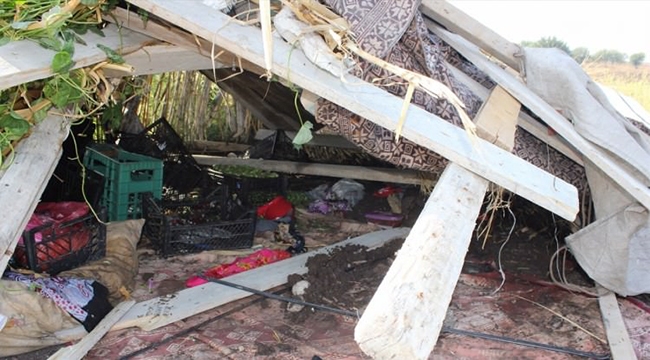 Kahvaltı yapan tarım işçilerinin çadırının üzerine otomobil devrilmesi sonucu 4'ü çocuk 7 kişi yaralandı.