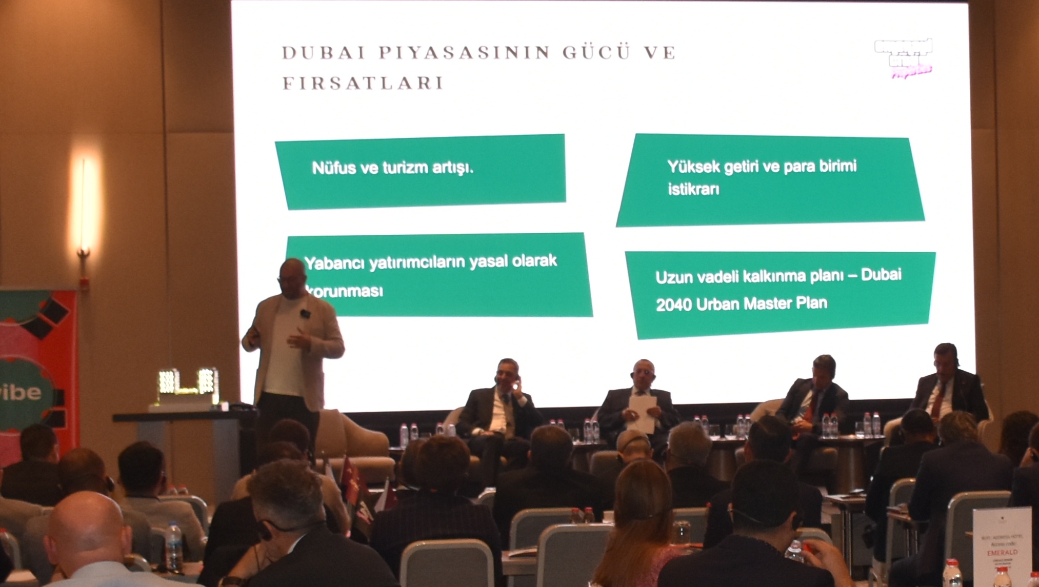 Ardından söz alan BAE merkezli Emerald City Properties L.L.C. CEO’su Kirill Degtyarev, BAE'nin gayrimenkul sektöründeki yatırım iklimine dair deneyimlerini paylaştı. Rusya'daki büyük inşaat projeleriyle tanınan Degtyarev, Türk pazarına sadece inşaat yapan bir firma olarak değil, aynı zamanda Dubai’deki projelerde kullandıkları teknolojik satış ve pazarlama yöntemlerini de getirmeyi planladıklarını belirtti.