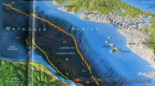 Fransız Le Figaro gazetesi Marmara Denizi altında kurulan gözlem ekibinde rol alan Fransız bilim adamları ve onların 6 aylık bulgularının yayınladığı rapora yer verdi. Uzmanlar iki fay hattının burun buruna olduğunu ve hareket etmediğini, ancak ilk hareketlilikte 2 metreye kadar kayma yaşanabileceğini ve bunun da Richter ölçeğine göre 7 ila 8 büyüklüğünde bir depreme yol açacağını söylediler.Fransız Le Figaro Gazetesi, ses dalgalarını ölçen balizlerinin, "İstanbul'un tektonik tabakalar altındaki fay hattında basıncın en yüksek seviyede olduğunu" gösterdiğini yazdı. Amerika'nın Sesi'nde yeralan habere göre, Marmara Denizi altında deprem olasılığını araştırmak üzere oluşturulan uluslararası bilim heyetinde yer alan Fransız uzmanlar, son araştırmaların "iki fay hattının burun buruna olduğunu ve hareket etmediğini, ancak ilk hareketlilikte 2 metreye kadar kayma yaşanabileceğini ve bunun 7 ila 8 richter büyüklüğünde bir depreme yol açacağını söylediler. Bilim adamları, "Ancak henüz bu depremin yarın mı yoksa 30 yıl sonra mı olacağı konusunda bir bilgimiz yok. Belki de bunu hiç bilemeyeceğiz" dediler."Fay Hattındaki Basınç En Yüksek Seviyede"İstanbul'un 10 kilometre kadar güneyinde Avrasya ve Anadolu tektonik plakalarını ayıran bir jeolojik fay hattı bulunuyor. Ve bu iki tektonik plaka, birbirine orantılandığında, her yıl yaklaşık 20 mm. kayıyor. Ancak ara yüzeylerinde, sürtünme kuvveti serbestçe kaymalarını engelliyor. Dolayısıyla düzenli olarak bloke olan iki fay hattı, yıl içinde gerçekleşen tüm yer değiştirmeleri de biriktiren bir şekilde, bir kaç saniyede, ani hareketliliklerle kayıyor bu da şiddetli depremlere yol açıyor.Yüzlerce kilometre uzunluğundaki Kuzey Anadolu fay hattı, 1912, 1939, 1942, 1943, 1944, 1957, 1967, 1999 ve 2014'te, bazı yerlerinden defalarca kırılma gösterdi. İzmit'te 1999'da, 18 bin kişinin öldüğü, 25 bin kişinin de yaralandığı 7.2 büyüklüğünde bir depreme yol açtı. İstanbul'da, Marmara Denizi'nin altında, uzun süredir fay hattında kırılma olmadı. İstanbul'da önemli bir deprem en son 250 yıl önce, 1766'da gerçekleşti.‘7 Veya 8 Büyüklüğünde Deprem’Fransız Paris Yerküre Fizik Araştırmaları Enstitüsü Başkanı Robin Lacassin, "Eğer o tarihten bu yana fay hattında hareketlilik olmadıysa, bu da demektir ki 2 metreye yakın bir haraketlilik olabilir. Ve bu 7 ila 8 büyüklüğünde bir deprem anlamına gelmektedir" dedi.Marmara Denizi altında karşılıklı sıkışan iki fay hattının yaratacağı deprem etkisinin ufak hareketlerle hissedilmeden geçip geçmeyeceğini araştırmak üzere aralarında Fransız bilim adamlarının da bulunduğu uluslararası bir uzman ekip kuruldu.Projeye katılan Batı Bretagne Üniversitesi jeofizikçisi Jean-Yves Royer, "Suların elektromanyetik dalgaları bloke etmesi nedeniyle fay hareketlerini GPS aracılığıyla ölçemiyoruz. Bunun üzerine 2014 yılı sonunda, Marmara Denizi'nde, İstanbul'un güneyindeki bölümüne, 800 metre derinlikte, fay hattının 1700 metre uzunluğunda, ses dalgalarını ölçen akustik balizlerden oluşan bir ağ yerleştirdik. Fay hatlarının ayrışma uzaklığını ölçmek için balizler kendi aralarında iletişim sağlıyor. Ama bu sistem, dalga hızını belirleyen suyun sıcaklığı, basınç ve tuzluluk oranı gibi etkenlerin de çok iyi bilinmesini gerektiriyor "dedi."Çok Büyük Risk Var"Uluslararası uzman ekip Geophysical Research Letters adlı bilim dergisinde araştırmalarının ilk 6 aylık bölümünün sonuçlarını yayınladılar. Royer, "Balizler arasındaki uzaklıkları net bir şekilde ölçtük. Ve bir hareketlilik tespit etmedik. Bir yıllık gözlem rakamları da geldi. O da bu tespiti doğrular nitelikte. Fay hattı bloke olmuş durumda. Bu bizim için sürpriz olmadı ama son derece güzel bir deneysel onay anlamına geliyor. Emin olmak için deneylere devam etmek gerekiyor. Ama bu bulgu aynı zamanda çok büyük bir risk olduğunu doğruluyor ve bu çok endişe verici" diye konuştu.Marmara Denizi altındaki ses balizlerinin 5 yıl deney alanında kalması öngörülüyor. Eğer sistemin dayanıklı olduğu görülürse, bu sistem deniz altını izleyen "sismografların da eklendiği sürekli bir izleme sistemine" çevrilebilecek."Deprem Öngörüsü Garanti Değil"Fransız uzman Royer, "Ama bu şu an 1 milyon Euro'ya mal olan sistemin maliyetinin 10 ila 100 katı arasında yükselmesi anlamına geliyor" diyerek işin finansal zorluklarına dikkat çekiyor. Üstelik bu kadar pahalı bir sistem depremin öngörülmesini de garanti edemiyor" görüşünü dile getirdi.Paris Yerküre Fizik Araştırmaları Enstitüsü Başkanı Robin Lacassin, " Bu jeolojik ve jeofizik ölçümlerin sonunda yalnızca potansiyel deprem riskini ve boyutunu tahmin edebiliriz. Araştırmanın bu haliyle depremin yarın mı yoksa 30 yıl sonra mı meydana geleceğini bilemeyiz. Belki de bu hiçbir zaman olanaklı olmayacak" dedi.