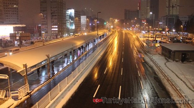 İstanbul’da dün akşam saatlerinde aniden bastıran kar yağışıyla birlikte mesai çıkışında eve dönüş yolu İstanbullular için adeta çileye dönüşmüştü.TRAFİK YOĞUNLUĞU YÜZDE 90'DAN YÜZDE 5'E İNDİİstanbul Büyükşehir Belediyesi (İBB) verilerine göre dün gece yarısına kadar yüzde 90 seviyelerinde trafik bugün ise hiç yaşanmadı.Gün boyu ana arterlerin açık olduğu İstanbul’da akşam saatleri yollar adeta boş kaldı. İBB verilerine göre İstanbul’da bu akşam trafik yoğunluğun normalin de altında kalarak yüzde 5 seviyelerinde görüldü.METROBÜSLER BOŞ KALDIKar nedeniyle İstanbulluların eve kapanmasıyla birlikte toplu taşıma araçlarında da herhangi bir yoğunluğa rastlanmadı. Metrobüs ve otobüs duraklarının genel olarak boş olduğu gözlendi. Öte yandan dün akşam saatlerinde bastıran kar yağışı İstanbul genelinde aralıklarla etkisini sürdürüyor.