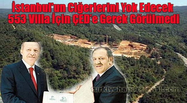 İstanbul Beykoz’da Kuzey Kirazlı ve Güney Kirazlı özel ormanlarına yapılacak 553 adet villa için “Çevresel Etki Değerlendirme-ÇED gerekli değildir” kararı verildi.Villaların yapılacağı özel orman arazisinin sahipleri CHP’li İBB Meclis Üyesi mehmet berke merter ile İBB şirketlerinden KİPTAŞ. Projenin içinde Turkuvaz Medya Grubu Yönetim Kurulu Başkanı Ömer Faruk Kalyoncu da var.Geçtiğimiz temmuz ayında zrs yapı İnşaat tarafından İstanbul Beykoz'da toplam 2 milyon 470 bin 186 metrekarelik özel orman alanına Orman ve Su İşleri Bakanlığı'ndan alınan ön izinler doğrultusunda yapılacak 553 adet villa için Çevre ve Şehircilik Bakanlığı'na başvuru yapılmıştı. Bakanlık villa projesini uygun bularak başlattığı incelemenin sonunda “Çevresel Etki Değerlendirme (ÇED) gerekli değildir” kararı verdi.