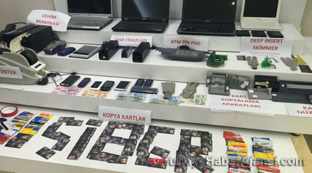Istanbul’da Siber Suçlarla Mücadele Şube Müdürlüğü ekipleri, Anadolu yakasında çok sayıda vatandaşın bilgisi dışında hesaplarından para çekilmesiyle ilgili çalışma başlattı.KART KOPYALAMA DÜZENEĞİPara çekimi yapılan ATM'leri inceleyen ekipler, bir şebekenin ATM'lere kart kopyalama düzeneği yerleştirerek kart bilgilerini elde ettiğini belirledi.Söz konusu soruşturma kapsamında operasyon düzenleyen ekipler, 2'si kadın 10 kişi gözaltına aldı.ELE GEÇİRİLENLERŞüphelilerin ev ve araçlarında yapılan aramada 15 kart kopyalama aparatı, 140 manyetik şeritli kart, kart basma makinası, POS cihazı, 13 bilgisayar, 15 cep telefonu ve lehim makinası ele geçirildi.6 KİŞİ TUTUKLANDIEmniyetteki işlemlerin ardından ardından adliyeye sevk edilen zanlılardan 6'sı tutuklandı. Şebekenin, 1 ayda çok sayıda kişinin kart bilgilerini kopyaladıkları öğrenildi.