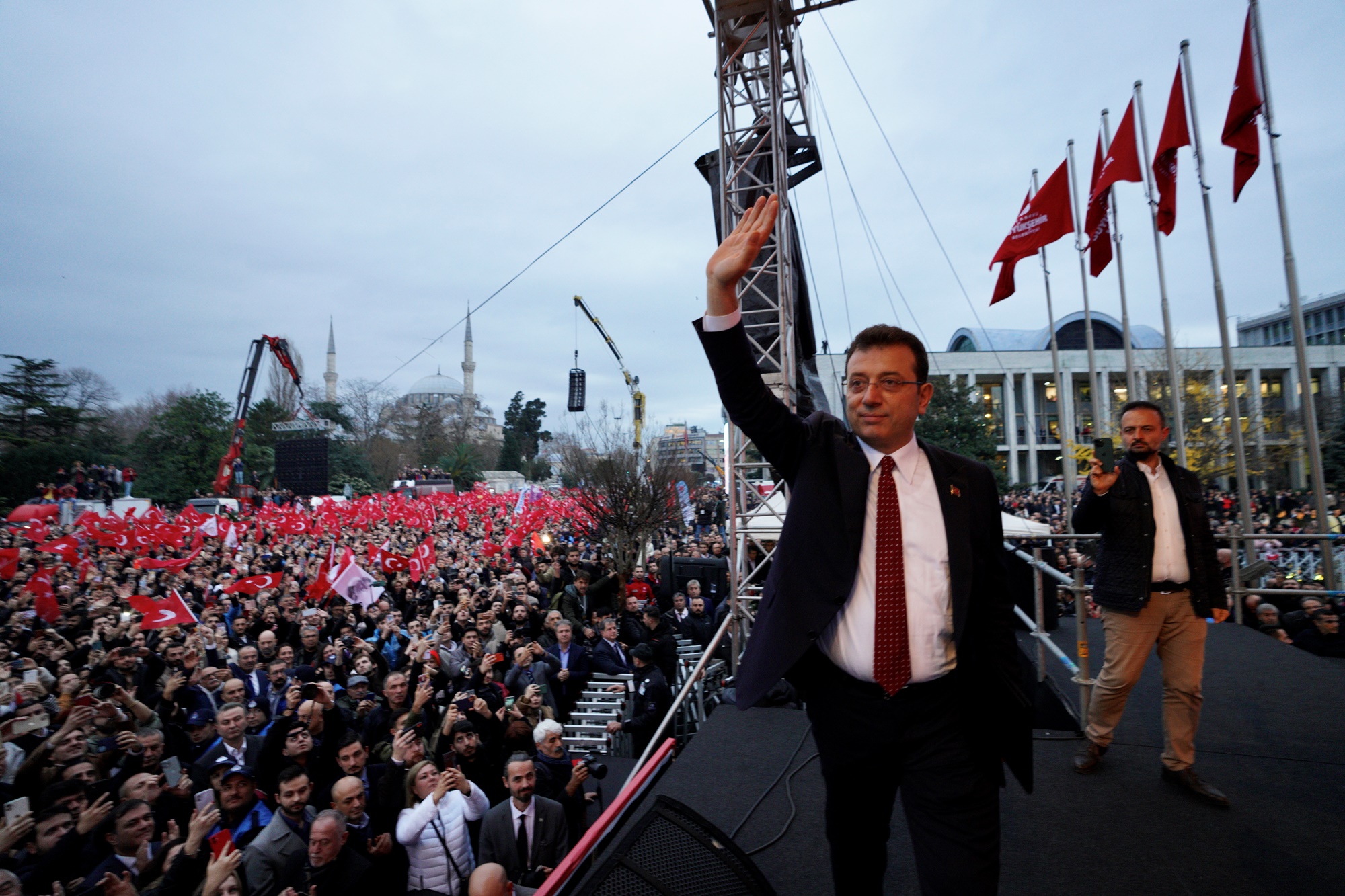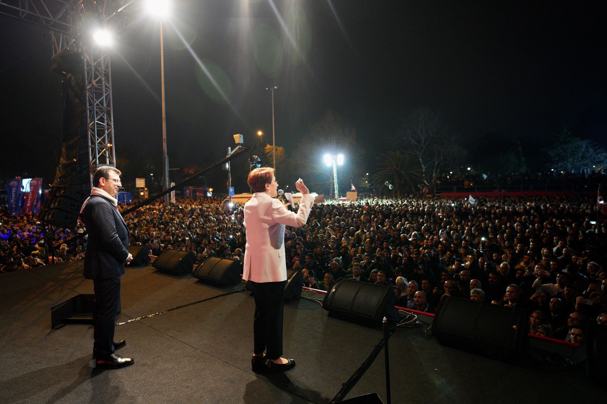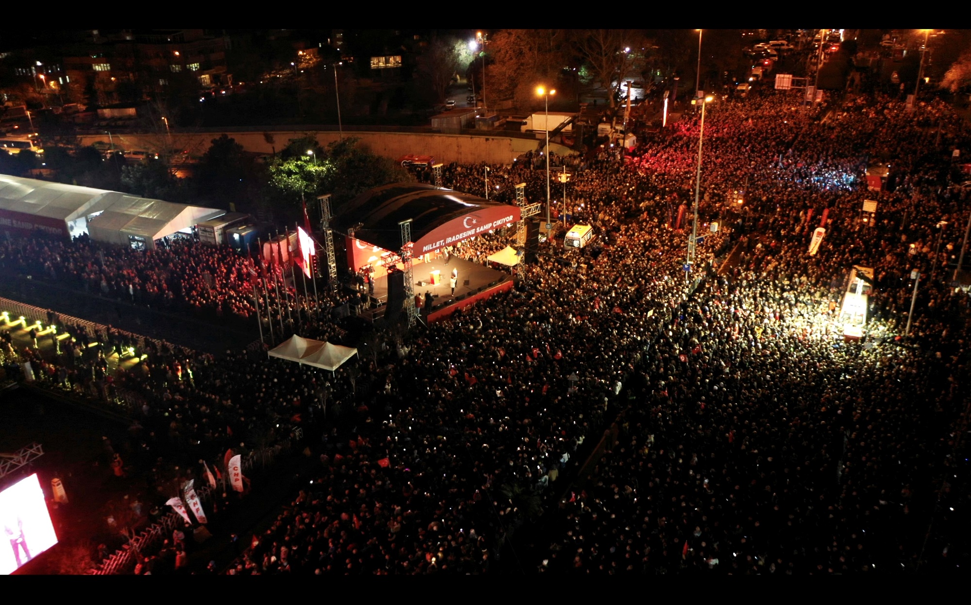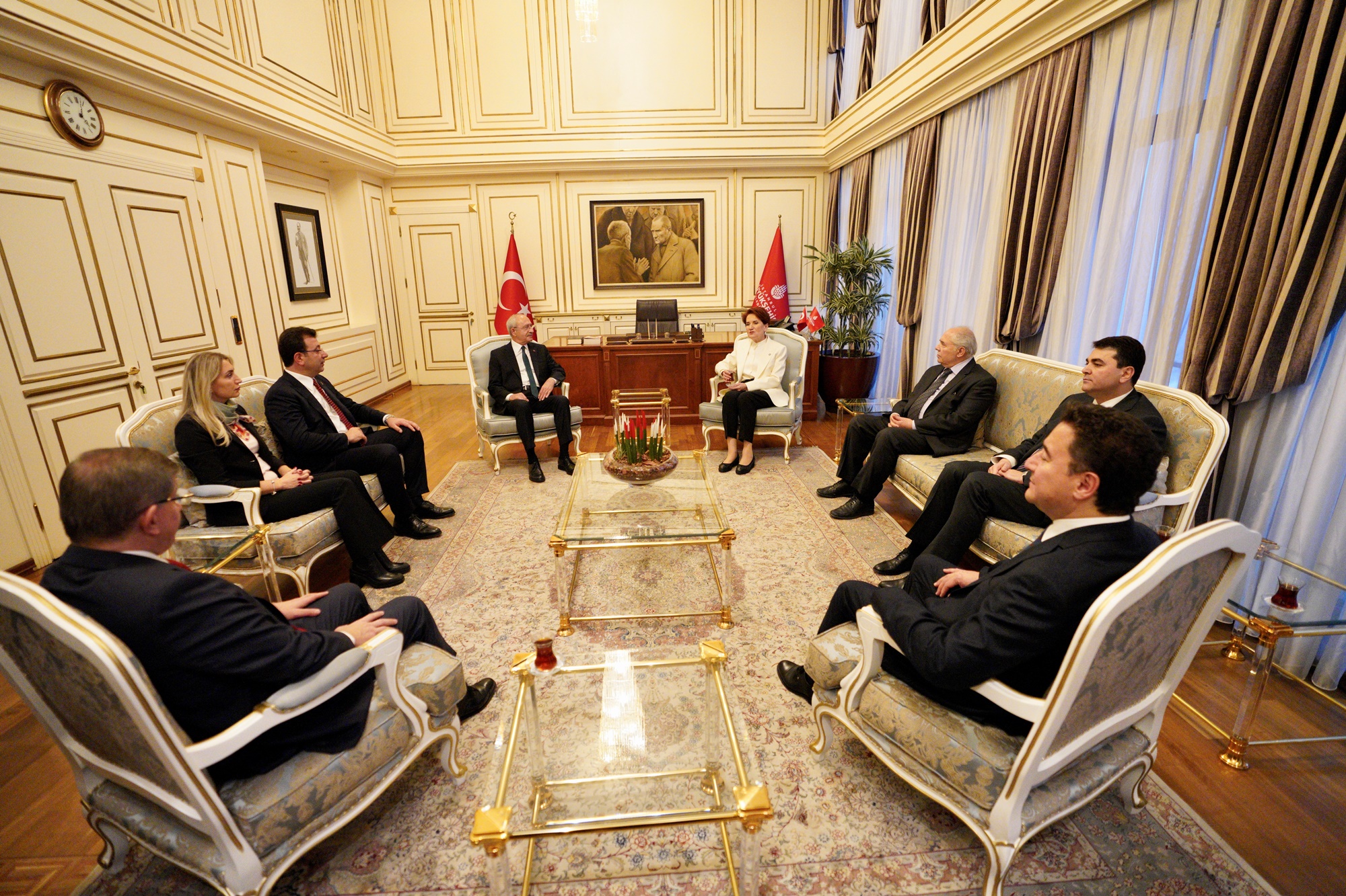 Altılı Masa liderleri; CHP Genel Başkanı Kılıçdaroğlu, İYİ Parti Genel Başkanı Akşener, Gelecek Partisi Genel Başkanı Davutoğlu, Demokrat Parti Genel Başkanı Uysal ve DEVA Partisi Genel Başkanı Babacan, yerel mahkemece 2 yıl 7 ay 15 gün hapis cezası verilen ve siyasi yasaklı olmasına hükmedilen İBB Başkanı Ekrem İmamoğlu’na destek için Saraçhane’de, yüz binlerce İstanbullu ile buluştu.