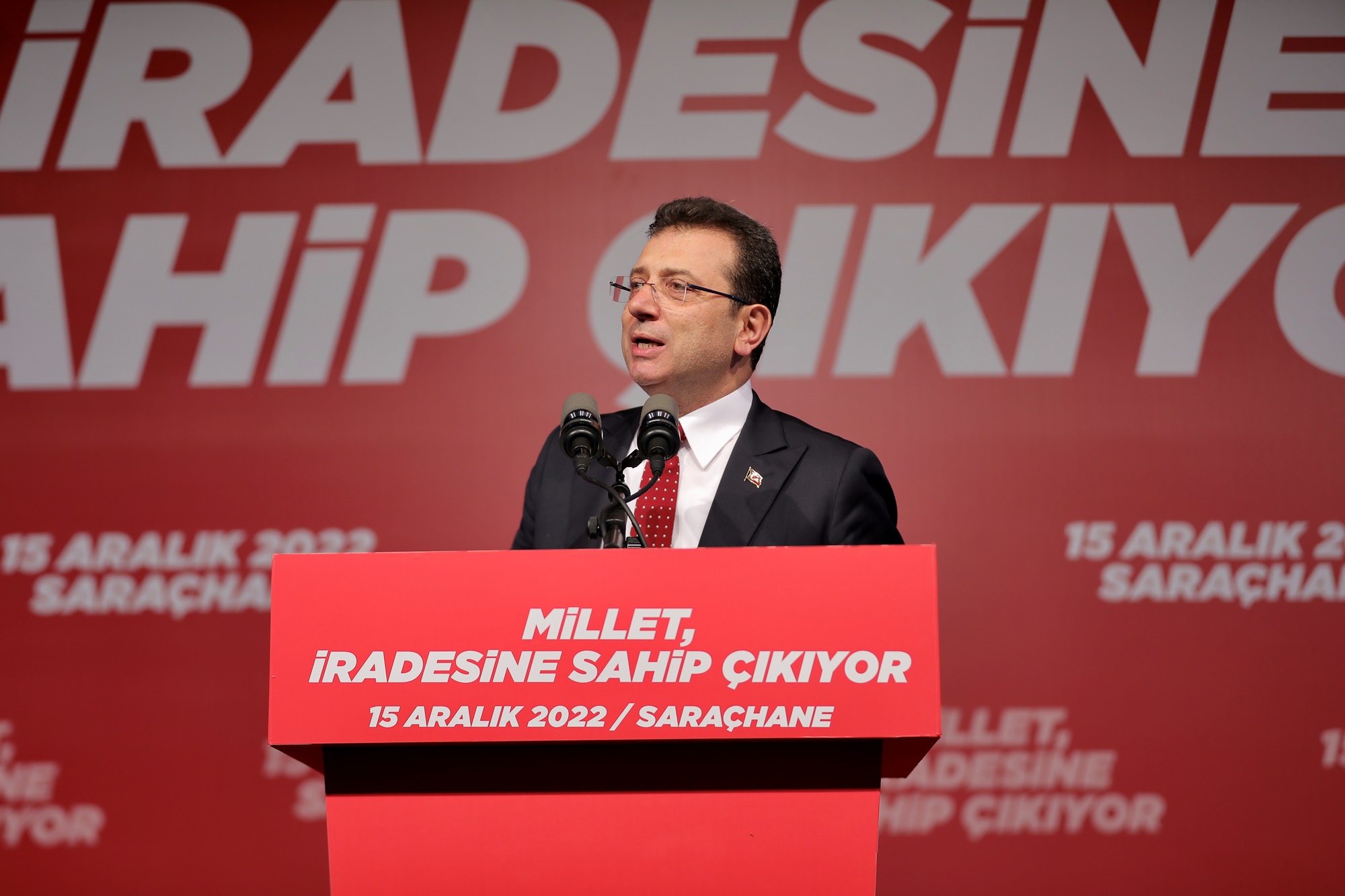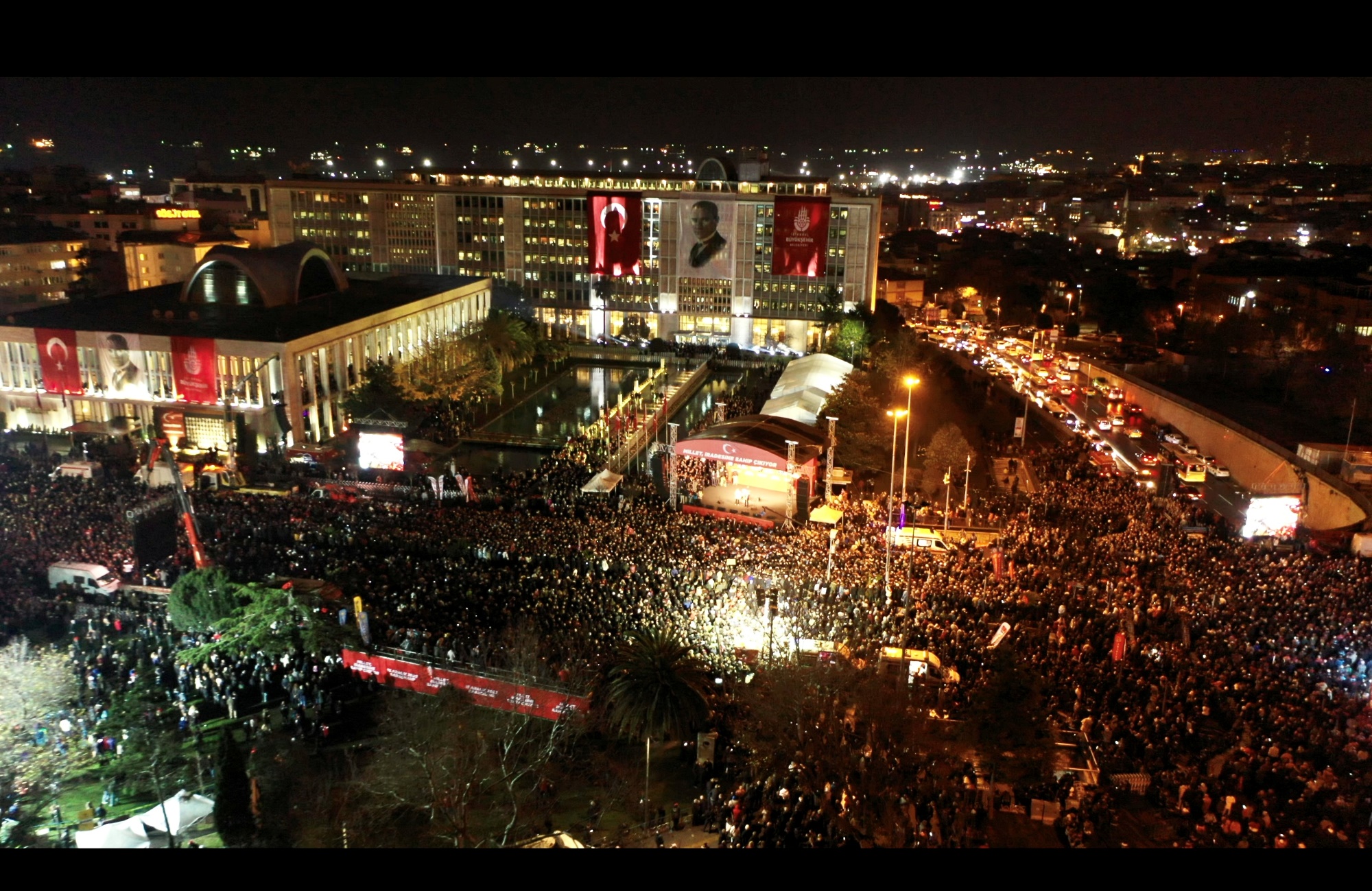 "Millet İradesine Sahip Çıkıyor" adıyla düzenlenen etkinliğe, Millet İttifakı’nın büyükşehir belediye başkanları, ilçe belediye başkanları, Altılı Masa İstanbul il başkanları ve siyasi parti temsilcileri destek verdi. İBB Başkanı’na destek verenler arasında İmamoğlu’nun eşi Dilek İmamoğlu ile büyük oğlu Selim İmamoğlu da yer aldı. Tarihi ana tanıklık etmek isteyen yaklaşık 200 binden fazla vatandaş, ellerindeki Türk bayraklarıyla Saraçhane’deki İBB ana yerleşkesinin önündeki cadde ve meydanı hınca hınç doldurdu.İmamoğlu, Altılı Masa liderlerini İBB önünde tek tek karşıladı ve makam odasında ağırladı. Etkinlikte, sırasıyla; Ekrem İmamoğlu, Kemal Kılıçdaroğlu, Ali Babacan, Gültekin Uysal, Ahmet Davutoğlu, Meral Akşener ve Sabri Tekir birer konuşma yaptı.