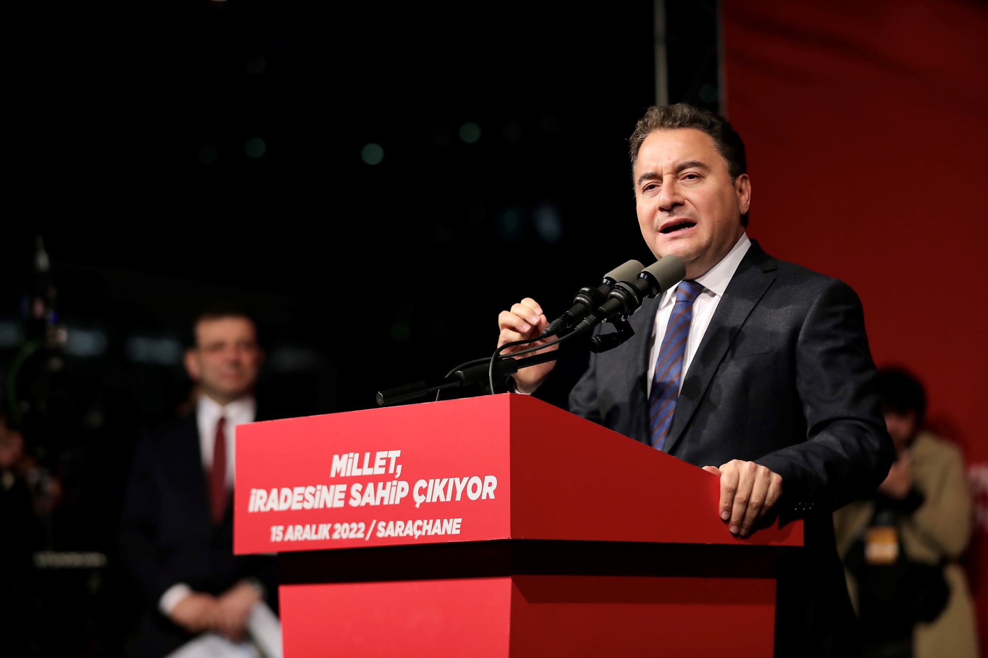 BABACAN: “EKREM İMAMOĞLU KARDEŞİME YAPILAN BU HUKUKSUZLUĞU, REDDEDİYORUM”DEVA Partisi Babacan ise, konuşmasında şu ifadeleri kullandı: “Biliyorum, çok öfkelisiniz. Hepimiz çok öfkeliyiz. Olanları kabul etmiyorum. Ekrem İmamoğlu kardeşime yapılan bu hukuksuzluğu, reddediyorum. Daha birkaç ay evvel Canan Hanım'a yapılan hukuksuzluğu, reddediyorum. Demirtaş'a yapılan hukuksuzluğu, reddediyorum. İktidarın seçimi kaybettiği belediyelere atadığı kayyumlarla rövanş almasını, reddediyorum. Onun için burada isyanımızı, feryadımızı tüm İstanbul duysun. Tüm Türkiye duysun diye, buradayım. Nedir bu çektiğimiz? Devlet gücünü eline alıp, başlıyor aşağıdakileri ezmeye. Başlıyor kendi rakibini, kendi sevmediklerini ezmeye. Başlıyor zulmetmeye. Üste çıkan, alttakini eziyor. Üste çıkan, başlıyor zorbalığa. Daha dünün ezileni Sayın Erdoğan, çıkınca başkalarını ezmeye başlıyor. Zulmetmeye başlıyor. Sandık günü hep beraber cevabımızı vereceğiz inşallah. Sayılı gün çabuk geçer. İşte biz, bu ülkede yaşanan bu nöbetleşe zorbalığa karşıyız. Adalet olsun istiyoruz.”“MİLLET, YARGI OYUNLARIYLA KENDİ İRADESİNİ GÖRMEZDEN GELENLERE DE EN İYİ CEVABI İLK SANDIKTA VERECEKTİR”“Bu millet; 27 Mayıs'ta, 12 Eylül'de, 28 Şubat'ta, 15 Temmuz'da silahla topla, tüfekle, demokrasiye kastedenleri tarihin tozlu sayfalarına gömmüş bir millettir. Bu millet; Nazım Hikmetler’e, Ahmet Kayalar’a, Necip Fazıllar’a, Halide Edip’e zulmedenleri tarihin tozlu sayfalarına gömen bir millettir. İnanın bu millet yargı oyunlarıyla, kendi iradesini görmezden gelenlere de en iyi cevabı ilk sandıkta verecektir. Biz, ‘Herkes için adalet’ demek için buradayız. Biz, ‘Herkes için özgürlük’ demek için bugün buradayız, Saraçhane'deyiz. Türk-Kürt, hiç fark etmez. Sünni-Alevi, hiç fark etmez. Yaşam farkı fark etmez. İnansın-inanmasın, fark etmez. Biz, hep beraber Türkiye'yiz. Ve bütün Türkiye için özgürlük diyoruz. ‘Adalet’ diyoruz. Onun için bugün buradayız.”“TÜRKİYE, 1’DEN BÜYÜKTÜR”“Şu andaki iktidar, ‘3Y ile mücadele edeceğim’ diye başa gelmedi mi? Bu millet onlara destek vermedi mi? 3Y neydi? Yolsuzlukla mücadele, yasaklarla mücadele ve yoksullukla mücadele. Fakat iş döndü, dolaştı; 3Y, tekrar bu milletin başına çöktü. Yoksulluk var mı? Var. Yasaklar? İşte Ekrem İmamoğlu kardeşimizi yasaklamaya çalışan bir zihniyet bu. Çok yazık. Yıllar sonra kendi iddiasını kendi mücadelesini unutan ve aynı zorlukları, aynı sıkıntıları başkalarına yaşatan bir zihniyetle şu anda karşı karşıyayız. Ama bunun özü ne biliyor musunuz? Devlet gücünün kullanımı, devlet gücüne sahip olan süreyle ve hukukla sınırlı olmalıdır. 3 dönem kuralı, 2015’te doldu bu üç dönem. Daha bugün uçaktan gelirken ne demiş? Hani ‘Son defa aday olayım’ falan diyordu ya, ‘Daha bırakmayacağım’ diyor. ‘Ben, partiyi falan bırakmam’ diyor. Yetmiyor; şu andaki iktidar partisinin kuruluş akitnamesinde vardır. 2015’te 3 dönemi doldu. Ama ne zaman ki devlet gücünü kullanan o süreyle sınırlanmaz? Ne zaman ki devlet gücünü kullanan hukuku tanımaz; işte o andan itibaren güç yozlaşması olur. Güç zehirlenmesi olur. Çünkü devleti yönetme gücü yozlaştırır. Mutlak güç, mutlaka yozlaştırır. 85 milyon birden büyüktür. Türkiye, birden büyüktür.”