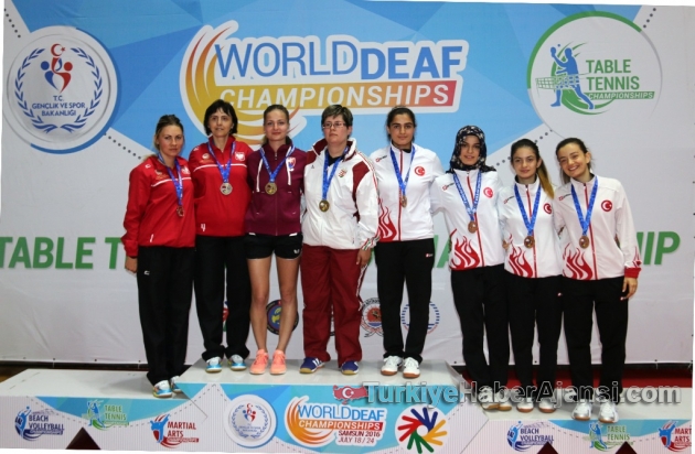 Samsun’un ev sahipliğinde devam eden İşitme Engelliler Dünya Şampiyonaları’nda judo ve karate branşlarındaki müsabakalar bugün (22 Temmuz Cuma) tamamlanırken, masa tenisi çiftler kategorisinde madalyalar sahiplerini buldu. Plaj voleybolunda ise grup aşaması noktalandı ve yarı final eşleşmeleri belirlendi.Karateyi 11 altınla kapattıkAtatürk Spor Salonu’nda gerçekleştirilen İşitme Engelliler Karate Dünya Şampiyonası’nın ikinci ve son gününde sporcular açık sıklet ve erkek takım kumite müsabakaları için tatamiye çıktı.Açık sıklet erkeklerde Volkan Kardeşler rakiplerini mağlup ederek dünyanın zirvesine çıkmayı başardı. Temsilcilerimiz açık sıklet kadınlarda ise hem altın hem de gümüş madalyayı boynuna taktı. Melek Dereköy ve Rumeysa Akyüz’ün kozlarını paylaştığı final mücadelesinde gülen taraf olan Melek Dereköy altına uzanırken, Rumeysa Akyüz kürsünün ikinci basamağında yer aldı. Milli Takımımız; Volkan Kardeşler, Abdullah Ataş, Şaban Köse, Ümit Özçelik ve Şükrü Dündar’dan oluşan ekip ile erkek takım kumite mücadelesinde de altının sahibi oldu.Türkiye böylece İşitme Engelliler Karate Dünya Şampiyonası’nı 11’i altın, yedisi gümüş, sekizi bronz olmak üzere toplam 26 madalya ile zirvede noktaladı.Judoda iki dünya şampiyonluğu dahaİşitme Engelliler Judo Dünya Şampiyonası’nda ise açık sıklet ve takım kata müsabakaları gerçekleştirildi.Judoda ilk gün dört altın madalya kazanan Türkiye, ikinci ve son günü iki dünya şampiyonluğu ile noktaladı. Erkekler açık sıklette mücadele eden Samet Bulut, finalde Kırgız rakibi Uulu Kanalbek’i mağlup ederek 100 kilonun ardından bir kez daha altın madalyayı boynuna taktı. Ayşe Kesiktaş ise kadınlar açık sıklet mücadelesini bronz madalya ile noktaladı.Judo’da Türkiye’nin son altın madalyası Abdullah Sevinç ve Erkan Esenboğa’nın oluşturduğu takım kata ekibinden geldi. Millilerimiz Rusya ve Portekiz’in önünde yer alarak zirvenin sahibi oldu.Türkiye böylece judo müsabakalarını altı dünya şampiyonluğunun yanı sıra yedi gümüş, altı bronz ve toplam 19 madalya ile noktaladı.Masa tenisinde çiftler heyecanı tamamlandıİşitme Engelliler Masa Tenisi Dünya Şampiyonası’nda ise çiftler mücadelelerinde madalyalar sahiplerini buldu.Kadınlarda Macar Zsuzsanna Fekete ile Slovak Eva Jurkova ikilisi, Polonyalı rakipleri Iwona Zyla/Monika Dorsz’u yenerek şampiyonluğa ulaştı. Hanife Ocak/Yurdagül Yamanel’den oluşan milli takımımız ise bronz madalya mücadelesinde Dilem Akyüz/Meltem Akyaz’ı mağlup etti ve kürsünün üçüncü basamağında yer aldı.Erkeklerde zafer Slovakya’dan Thomas Keinath/Marek Turura’nın olurken, Litvanyalı Gintautas Juchna/Deividas Takinas ikinci, Hindistan’dan Tanuj Mukherjee/Ullas Naik üçüncü oldu.Slovak çift Eva Jurkova/Thomas Keinath, karışık çiftler mücadelesinde birlikte zirveye çıkarak bir kez daha altın madalyayı boyunlarına taktı. Zsuzsanna Fekete/Mark Mechau ikinci olurken, Polonyalı Iwona Zyla/Adrian Szeliga çifti kürsüyü tamamladı.Plajda yarı finalistler belirlendiDokuz erkek, altı kadın takımının kozlarını paylaştığı İşitme Engelliler Plaj Voleybolu Dünya Şampiyonası’nda ise üç gündür devam eden grup aşaması tamamlandı ve yarı finale yükselen takımlar belli oldu.Gerçekleşen yarı final eşleşmeleri şu şekilde:KadınlarIuliia Elizova/Anastasiya Lyazina (RUS) – Kezban Ateş/Gülay Bayrak (TUR)Birute Aleknaviciute/Ingrida Milkintaite (LTU) – Oldriska Zidkova/Ivana Votipkova (CZE)ErkeklerRushan Dayanov/Maxim Selyutin (RUS) – Tomasz Orzel/Jakub Kupczalojc (POL)Evgeny Kirillov/Ruslan Afanasyev (RUS) – Jacek Patola/Grzegorz Luszczewski (POL)İşitme Engelliler Dünya Şampiyonaları’nda yarın (23 Temmuz Cumartesi) plaj voleybolu yarı final ve final karşılaşmaları oynanacak. Masa tenisi branşında ise ferdi müsabakalar başlayacak.