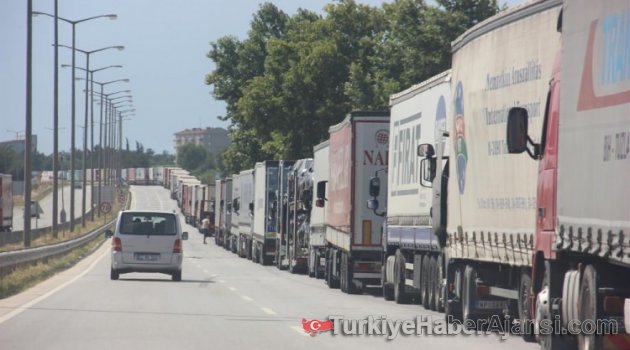 Kapıkule Sınır Kapısı'ndan, Bulgaristan'a çıkış yapmak isteyen TIR'lar 20 kilometreyi aşkın kuyruk oluşturdu.