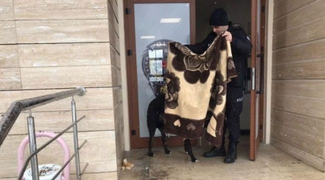İstanbul Avcılar'da soğuk havada üşüdüğü için polis merkezinin kapısına sığınan köpeğin üzerine polisler tarafından battaniye örtüldü. Yürek ısıtan görüntüler cep telefonu kamerasına yansıdı.